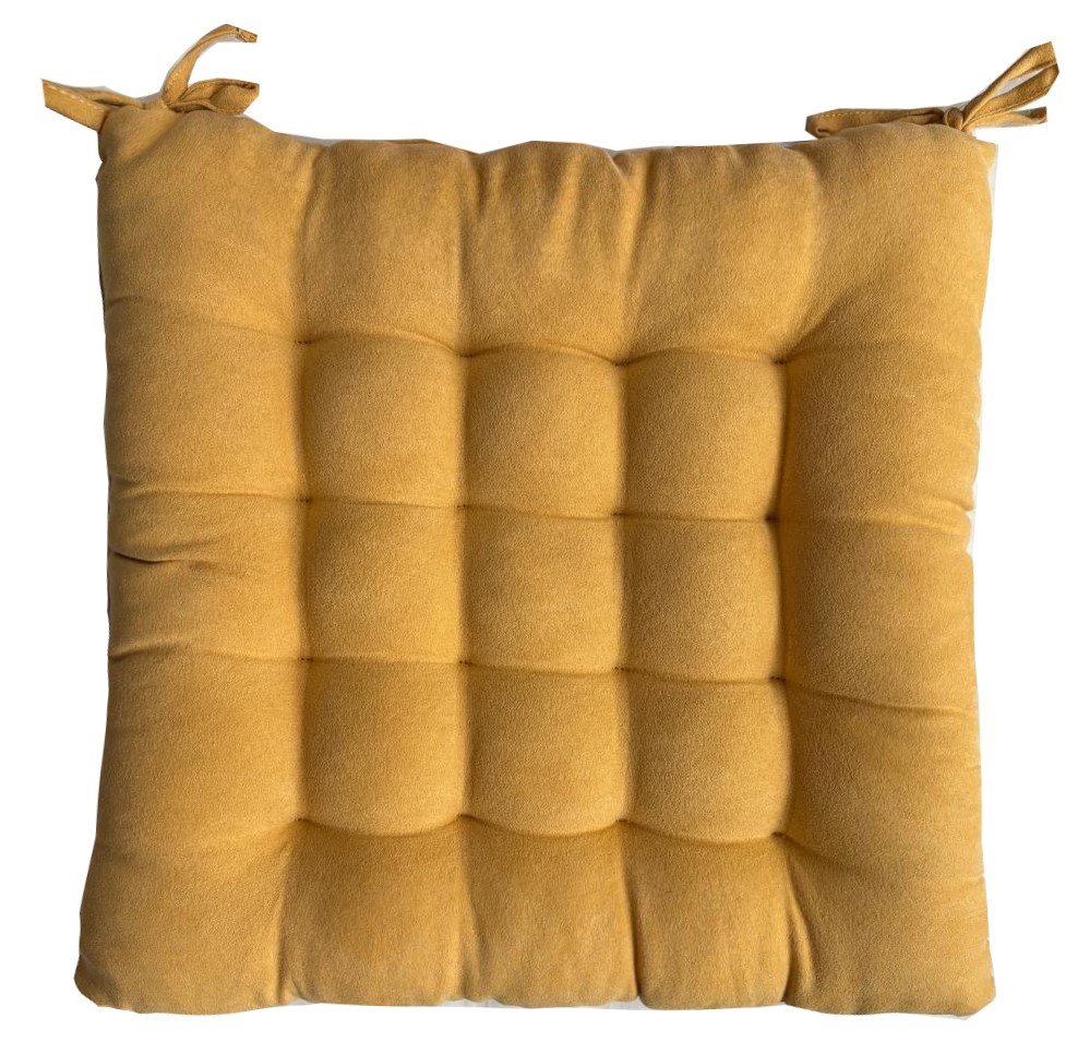 Сидушка для стула с тафтингом обеспечивает комфортную посадку. Изготовлена из ткани с эффектом замши из 100% полиэфира, наполнитель - 100% полиэфирное волокно. Сидушка не оснащена съемными чехлами. Крепится к стулу с помощью завязок. Стирка проводится при 30С.