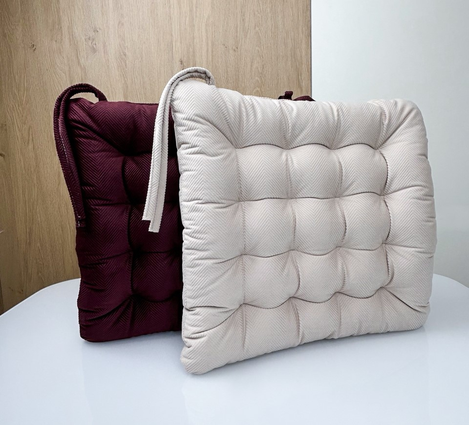 Сидушка-подушка для стула на завязках, с декоративным тафтингом, размером 38см х 38см. Выполнена из велюра с тиснением классическим узором елочка. Изделия из коллекции Herringbone - это классический, элегантный, вневременной стиль, они добавят интерьеру выразительный характер. Изделие прекрасно дополнит любой интерьер, а упругий и мягкий наполнитель из 100% полиэфирного волокна обеспечит мягкую и комфортную посадку на стуле, кресле или табурете.