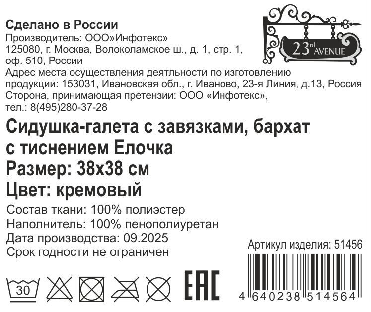 Сидушка 23rd Avenue Herringbone с завязками кремовая, 38 x 38см