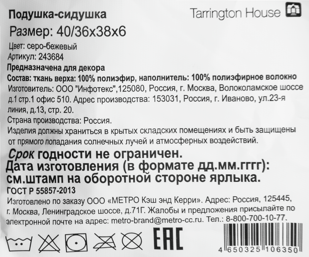 Tarrington House Подушка для мебели серо-бежевая с тафтингом 40/36 x 38 x 6см на стул. Подушка с мягким наполнителем обеспечит комфорт при сидении, а также станет отличным дополнением для Вашего интерьера. Она легко крепится и надежно фиксируется с помощью завязок. Ткань из полиэстера отличается прочностью, износостойкостью. Она легко стирается, быстро сохнет и не впитывает запахи. Такие подушки отлично подойдут для использования дома или на даче.