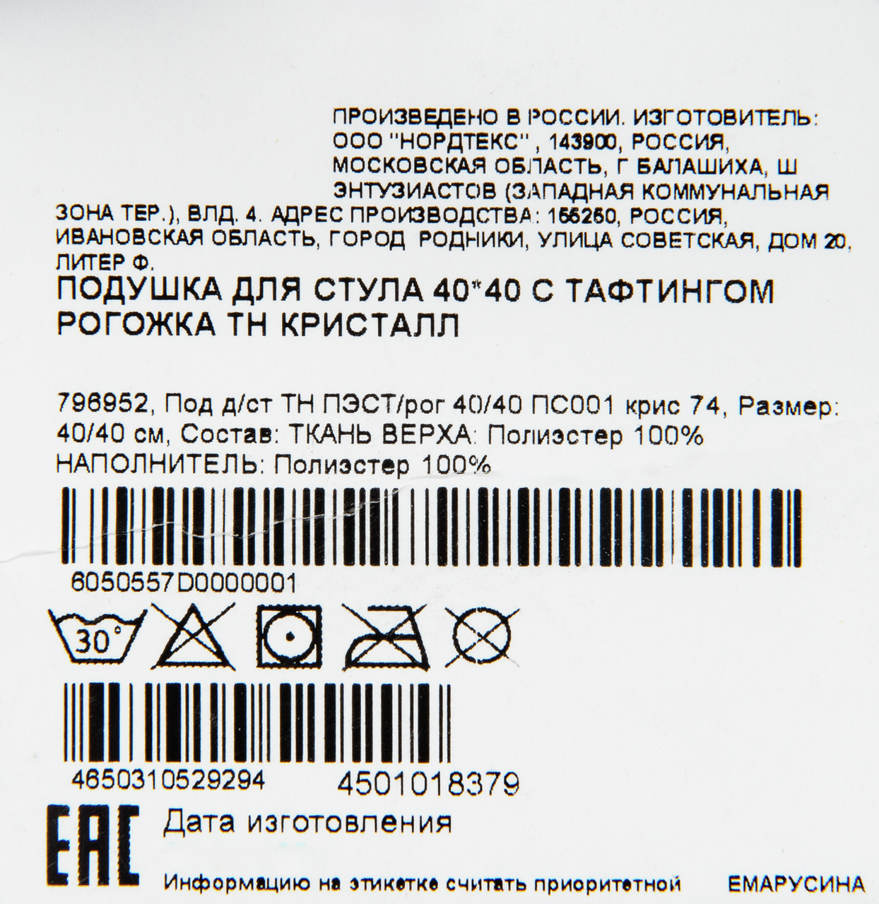 Tarrington House Сидушка с тафтингом рогожка кристалл, 40 x 40см ткань рогожка является олицетворением так называемого крафта. Красоту таких тканей обеспечивает сама фактура и меланжевый эффект (неровный окрас пряжи). Материал повторяет структуру ткани из натурального льна, но обладает дополнительными полезными свойствами: высокой износостойкостью, прочностью и устойчивостью к запахам.