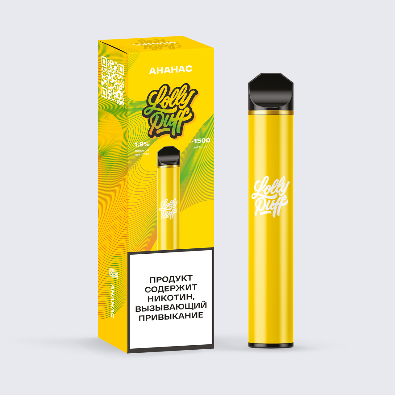 Одноразовые электронные сигареты Lolly Puff 1500 со вкусом Ананас – новинка от бренда Lolly Puff. Аккумулятор емкостью на 1000 mAh с возможностью подзарядки через разъем USB Type-C и бак с 5.5 мл жидкости (Солевой никотин крепостью 2% (20 мг/мл)) позволяют совершить до 1500 затяжек. Хватит примерно на 3 дней. А сетчатый испаритель Mesh coil, защитит от появления привкуса гари при парении.
