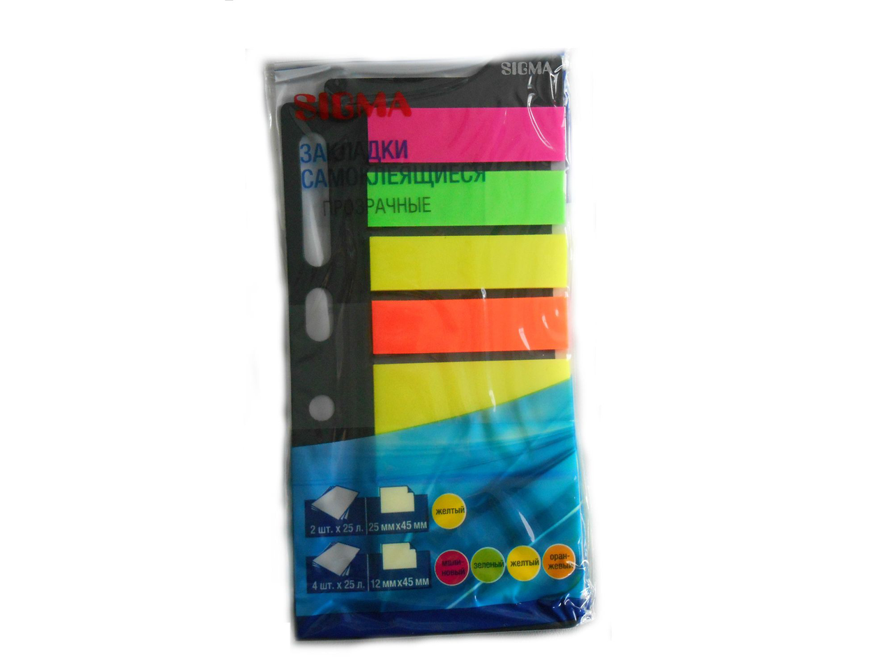 SIGMA Закладки самоклеящиеся 4 цвета 4 блока 1.2 х 4.5см, 6 штук х 25 листов