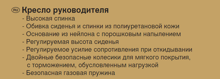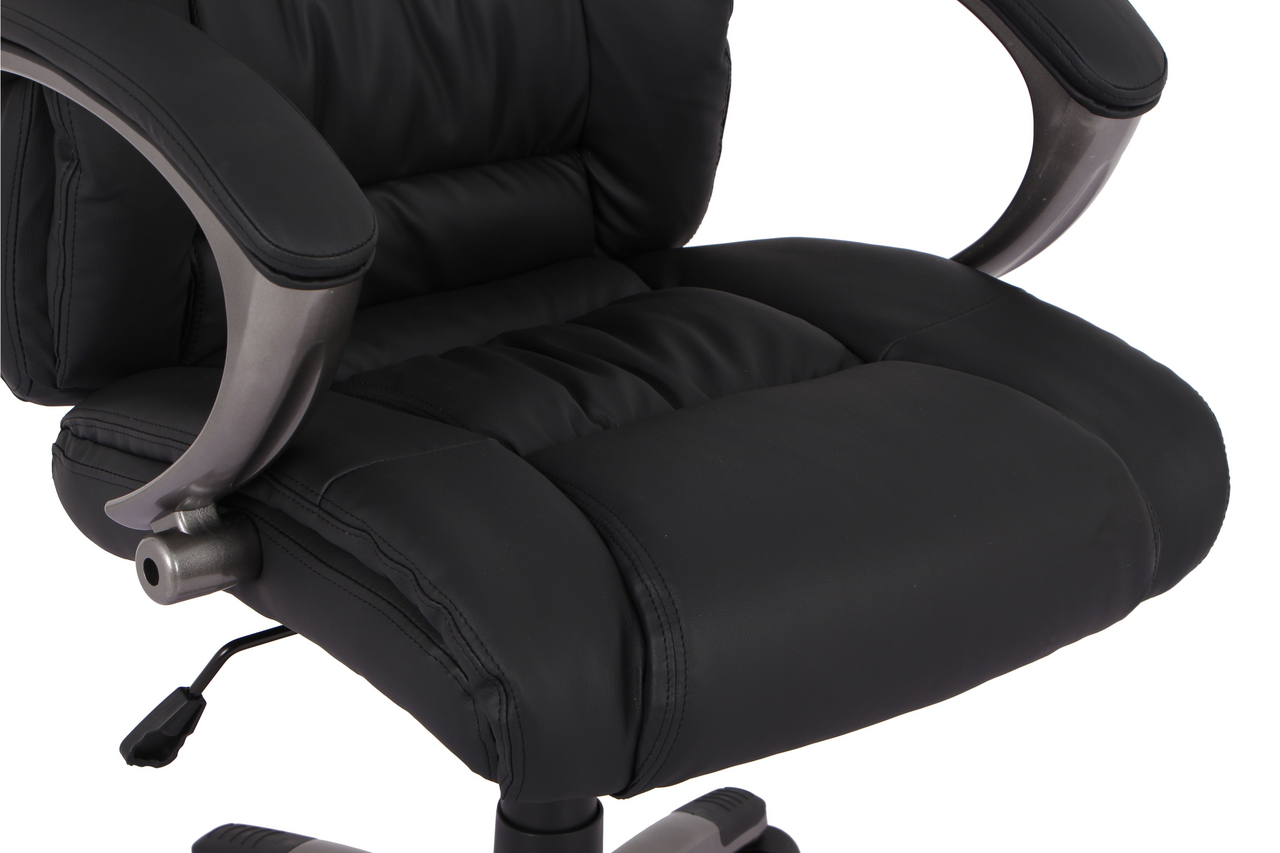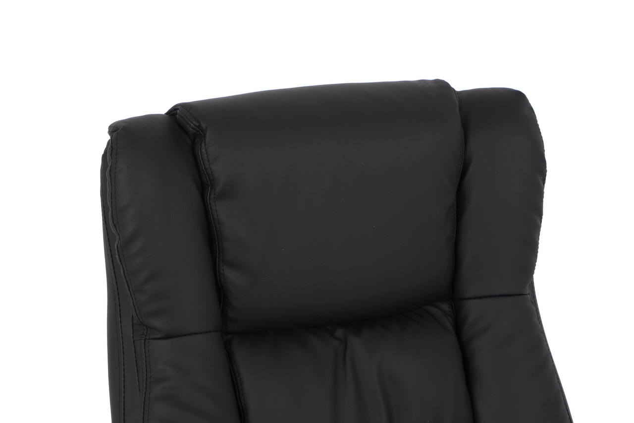 Кресло руководителя H-9129L — это офисная модель, представленная в классическом черном цвете. Обтянуто изделие крепкой искусственной кожей, которая служит длительное время, не образуя трещин или затиров. Пользователи по достоинству оценят эргономичную форму кресла, удобную спинку и возможность ее фиксации в необходимом положении. Также присутствует система газлифт, позволяющая отрегулировать изделие по высоте под конкретные индивидуальные особенности. Механизм качания и подлокотники с мягкими накладками добавят комфорта в процессе эксплуатации. Основа кресла изготовлена из надежного высококачественного пластика, который без труда выдерживает удары и другие многочисленные механические воздействия. Пять колес, прочно закрепленных в крестовине, легко скользят по любой половой поверхности, не оставляя царапин или видимых следов.