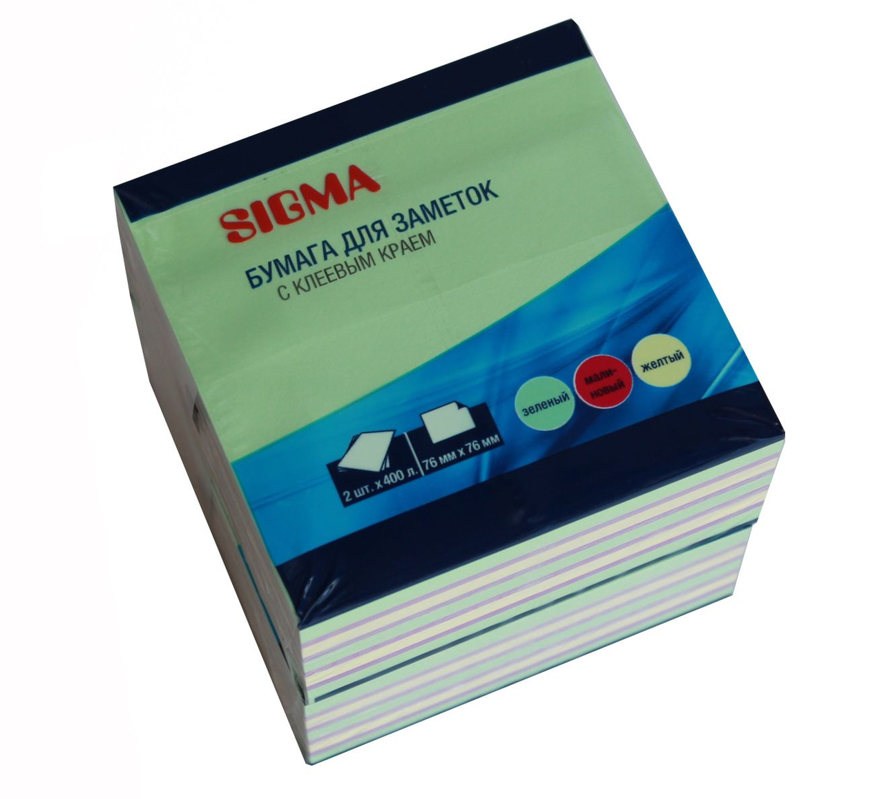 SIGMA Бумага для заметок с клеевым краем 3 цвета 7.6 х 7.6см 400 листов, 2шт