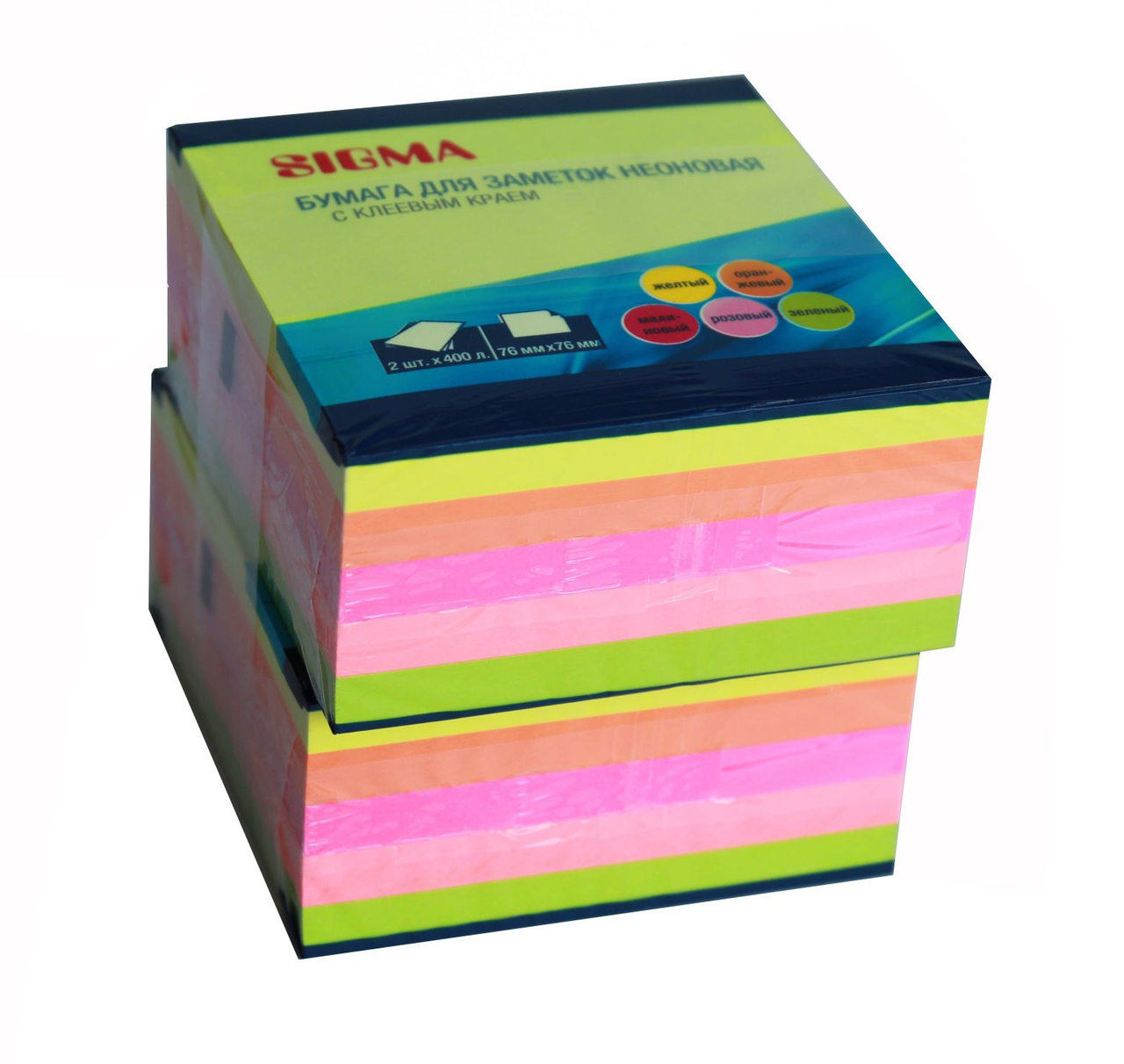 SIGMA Бумага для заметок с клеевым краем 5 цветов 7.6 х 7.6см 400 листов, 2шт