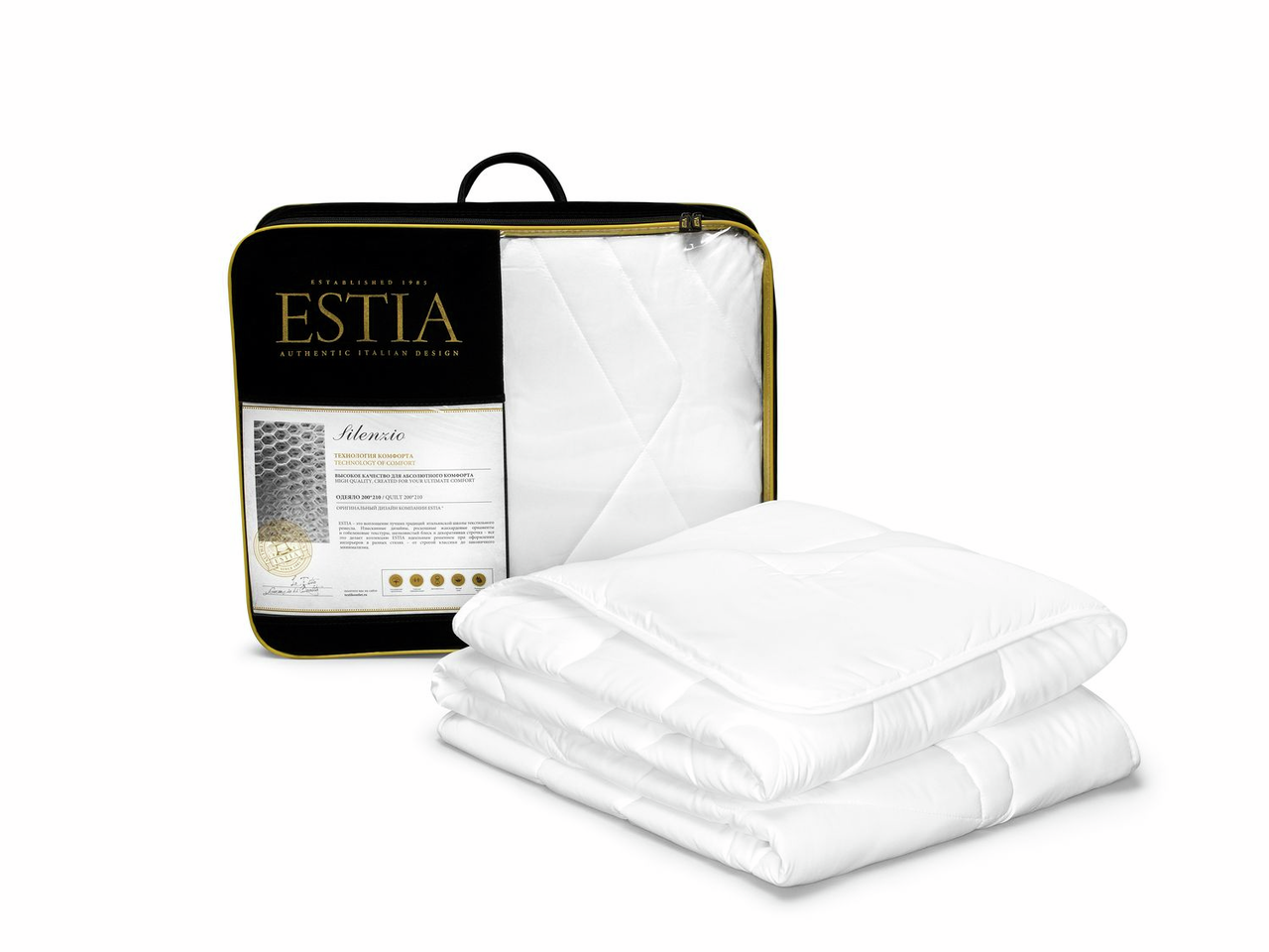 Одеяло Estia Силенсио 200х210, 1 предмет изготовлено с учетом модных тенденций в области дизайна постельных принадлежностей. Многофункциональное изделие можно использовать как плед для отдыха или покрывало для придания аккуратного вида спальному месту. Его верхняя часть выполнена из мягкого и гипоаллергенного текстильного материала, который легко пропускает воздух и отводит влагу. В качестве наполнителя использовано силиконизированное волокно, придающее изделию податливость и легкость. Модель хорошо удерживает тепло, обеспечивая комфортный микроклимат во время ночного отдыха. Она быстро сохнет, сохраняет первоначальную форму и размер после многочисленных стирок. Приобрести одеяло Estia Силенсио 200х210, 1 предмет можно в торговом центре METRO.
