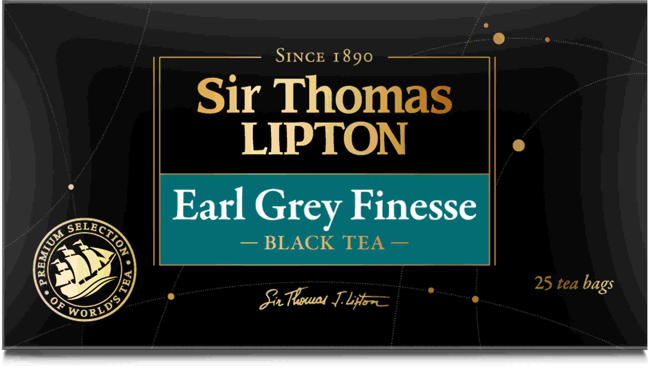 Чай с мировым именем Lipton - это лидер среди чайных брендов: его пьют в более чем 150 странах. Мировой объем потребления чая Lipton составляет 4,5 млрд литров в год. Каждый день в мире выпивается 205 млн чашек чая Lipton. Ключевой фактор в укреплении лидерских позиций Lipton – высокое качество и внимание к меняющимся предпочтениям потребителей. Специалисты Lipton внимательно следят за каждым этапом создания чая, начиная с рождения чайного листа и заканчивая купажированием, чтобы Вы могли в полной мере насладиться насыщенным вкусом и богатым ароматом вашего любимого чая. Продукция компании – это только свежие чайные листья, натуральный сок чайных листьев, насыщенный вкус и богатый аромат чая.Чай Sir Thomas Lipton Earl Grey Finesse — это высококачественный бленд, выращенный и бережно отобранный ручным способом на солнечных высокогорьях Шри-Ланки. Сладковатый вкус, освежающий цитрусовый аромат и легкий цветочный оттенок в послевкусии — визитная карточка чая Earl Grey, придающая ему особую элегантность.Sir Thomas Lipton Earl Grey Finesse создан для истинных ценителей классики, которые прочувствуют его глубину и неповторимый, полный вкус. Этот чай подарит мощный заряд бодрости и энергии утром, в обед и в течение всего дня. Он поможет согреться, утолить жажду и восстановить потраченные силы. Изысканный напиток займет достойное место на чайной полке в офисе и в домашней коллекции. Это прекрасный вариант для встречи гостей и партнеров, для совещаний и важных встреч, серьезных разговоров и теплых свиданий.Для приготовления крепкого и насыщенного напитка, залейте пакетик кипятком, подождите 3-5 минут и наслаждайтесь великолепным бодрящим чаем. Неизменность высокого качества гарантирует имя основателя в названии коллекции и его подпись на упаковке — Sir Thomas Lipton.