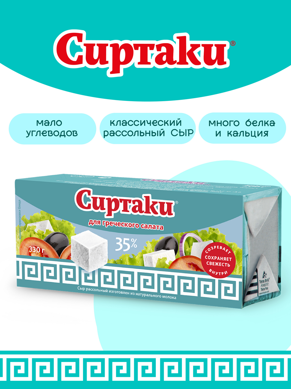 Сыр Сиртаки Classic 330 г - нежный белый рассольный сыр для греческого салата и блюд средиземноморской кухни. Сыр производится по традиционной рецептуре острова Родос, для его приготовления используются только молоко и закваска, без искусственных консервантов и красителей. Рассольный Сиртаки Classic имеет кисловатый молочный вкус с умеренной солоноватостью — классический вкус сыра фета, сырная масса белоснежного цвета, упругая.