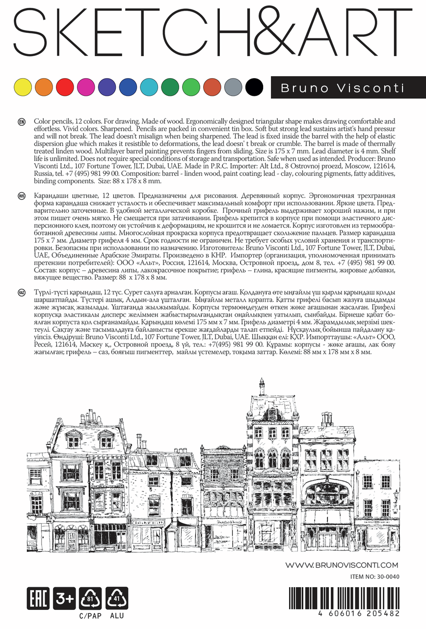 Скетч-карандаши цветные Sketch&Art Bruno Visconti 12 цветов