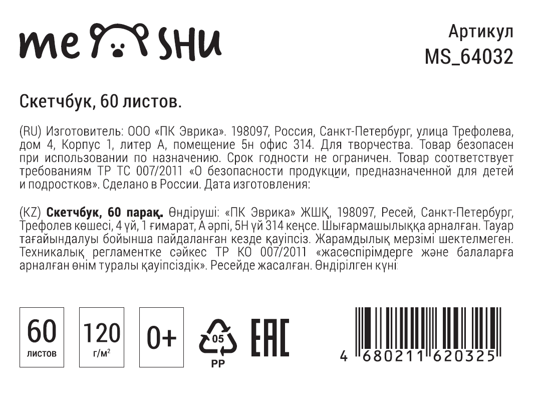 Скетчбук Meshu оценят любители творчества. Изделие размером 150*150мм подойдёт для рисования цветными и акварельными карандашами, а также другими графическими материалами. Внутренний блок - 60 белых листов из офсетной бумаги плотностью 120г/м2.