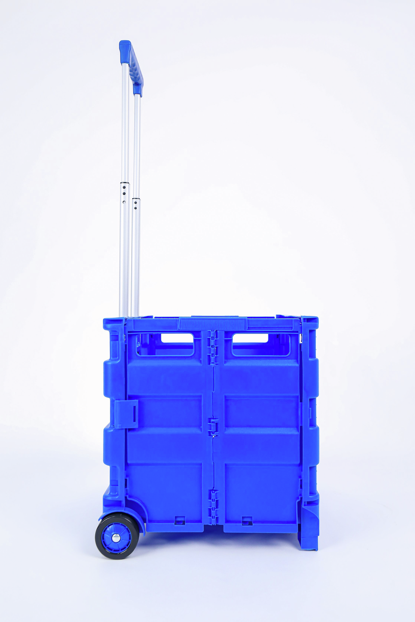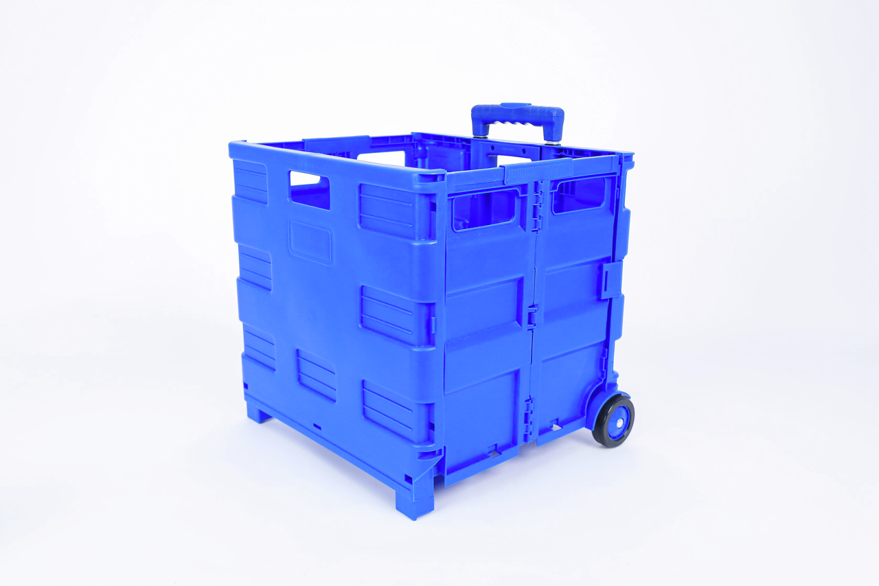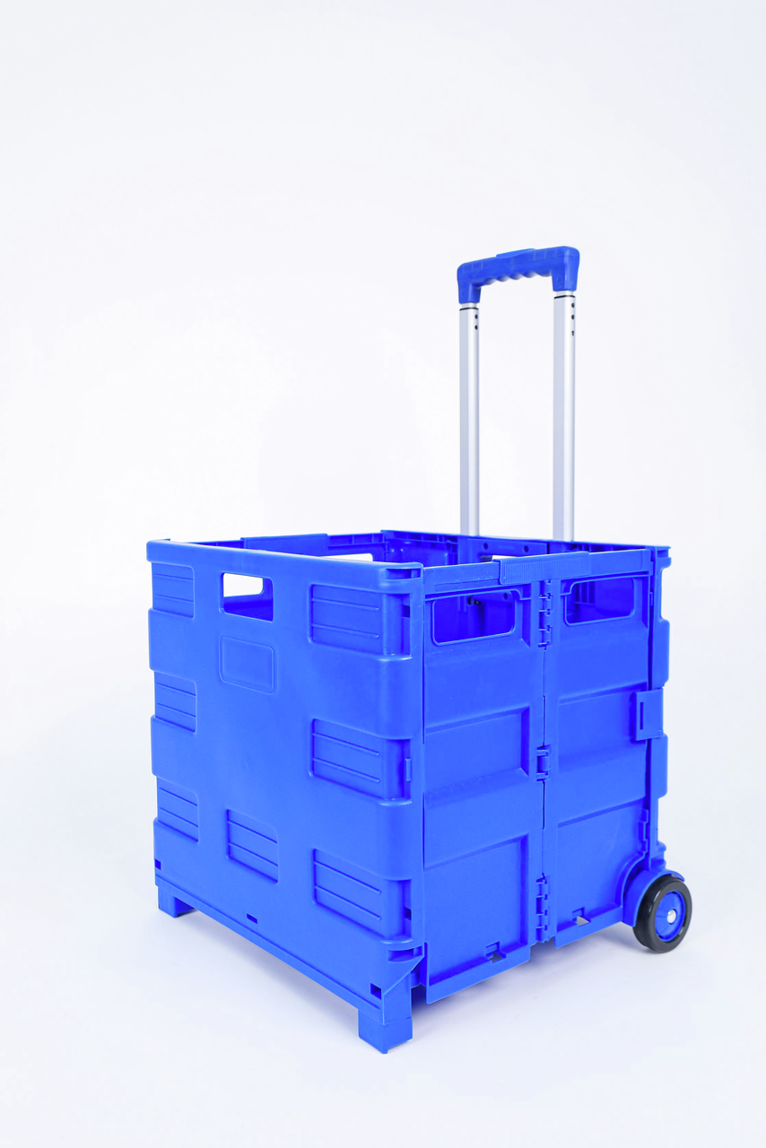 Складная тележка для покупок поможет вам сделать больший запас различных товаров, не посещая магазин дважды. Изделие в сложенном виде очень компактное, поэтому его удобно брать в любое место. Тележка снабжена прочными колесами, которые выдерживают большую нагрузку. Вам не придется больше носить груз в руках.