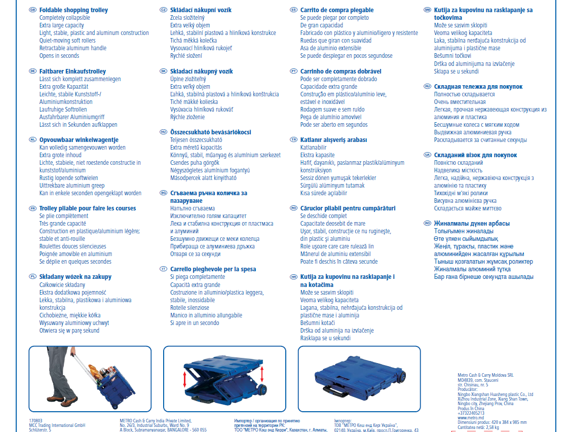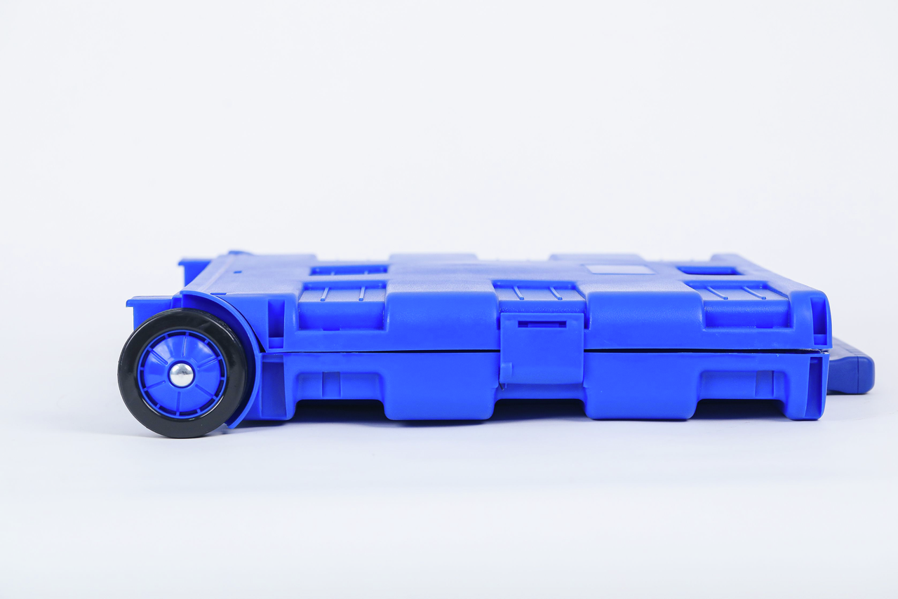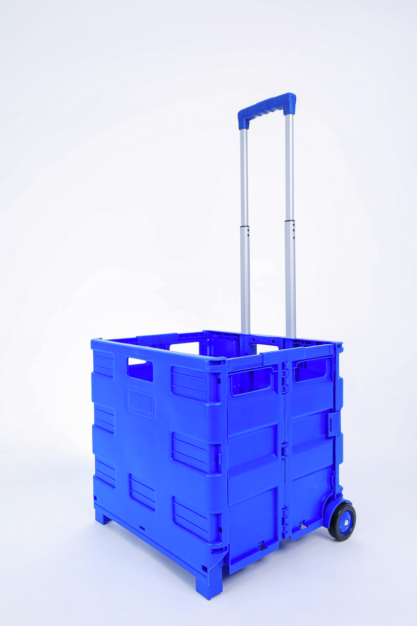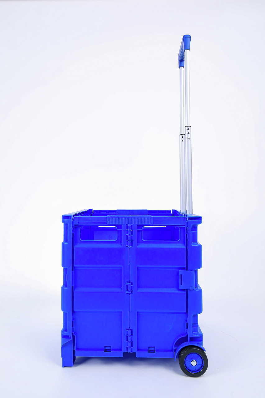 Складная тележка для покупок поможет вам сделать больший запас различных товаров, не посещая магазин дважды. Изделие в сложенном виде очень компактное, поэтому его удобно брать в любое место. Тележка снабжена прочными колесами, которые выдерживают большую нагрузку. Вам не придется больше носить груз в руках.