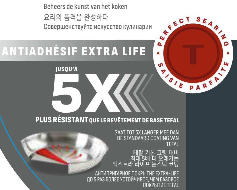 Новое поколение сковород - Tefal Emotion Flavors - идеальная текстура, красивый цвет и аппетитный аромат каждого вашего блюда. Новое 5-слойное антипригарное покрытие Extra Life 5Х прослужит до 5 раз дольше по сравнению с базовым антипригарным покрытием Titanium Non-stick. Сковорода с лёгким изгибом дна собирает масло в центре, обеспечивая идеальную прожарку блюд. Сковорода имеет усовершенствованное индукционное дно для более быстрого и равномерного нагрева на всех плитах. Глубокая форма сковороды позволяет готовить большие порции. Соберите свою коллекцию индукционной посуды Emotion Flavors.