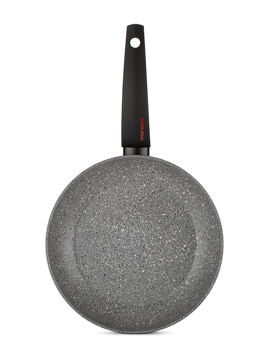 Сковорода итальянского MONETA Diana изготовлена из высококачественного алюминия. Снаружи сковорода покрыта антипригарным покрытием темно-графитового, матового цвета. Внутри сковорода покрыта минеральным покрытием, ручка из бакелита с покрытием SoftTach. Антипригарное покрытие имеет 4 слоя, что гарантирует долговременное использование без потери антипригарных свойств. Сковорода подходит для любых плит, в том числе индукционных, и ее можно мыть в посудомоечной машине. Гарантия на покрытие 5 лет.