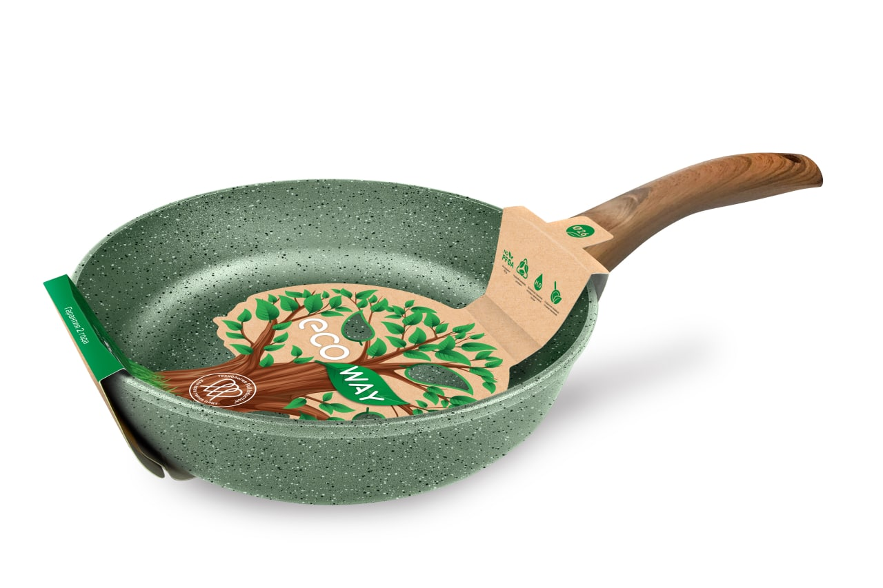 Сковорода Нева Металл Посуда Ecoway, 26см невероятно легкая, но в то же время прочная сковорода из литого алюминия не деформируется и не качается на плитеПокрытие сковороды обладает высокой износостойкостью и долго сохраняет антипригарные свойстваПокрытие на водно-кремниевой основе не содержит PFOA (перфторокановой кислоты)Эргономичная ручка из бакелита удобно лежит в руке и не нагревается