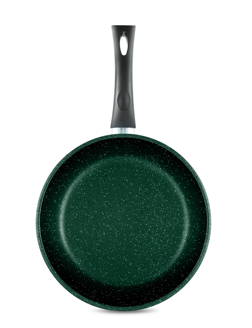 Универсальная сковорода с антипригарным покрытием с эффектом натурального камня - "Балтик грин". Трендовый изумрудный цвет сковороды выглядит не только стильно, но и помогает долго сохранять внешний вид сковороды.Готовить на этой сковороде легко и удобно. Форма корпуса с высокими бортами и увеличенной полезной площадью дна делают её универсально подходящей для всех основных процессов приготовления: быстрая обжарка на сильном огне, пассерование, жарка, тушение, томление на медленном огне. Литой алюминиевый корпус прекрасно распределяет и удерживает температуру.Благодаря качественному антипригарному покрытию позволяет избежать пригорания продуктов даже при готовке без масла. А значит, за ней просто ухаживать – легко моется обычными жидкими средствами ��ля мытья посуды. Покрытие многослойное на водно-кремниевой основе, не содержит PFOA (перфтороктановую кислоту), безопасно для контакта с пищевыми продуктами, а также в производстве и для окружающей среды.