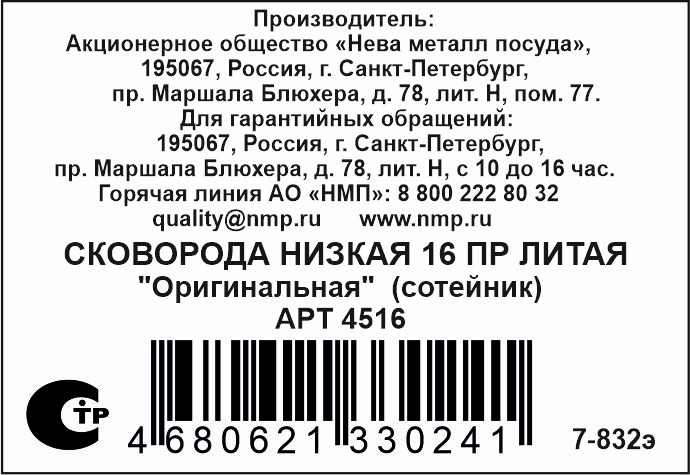 Сковорода НМП Оригинальная, 16см