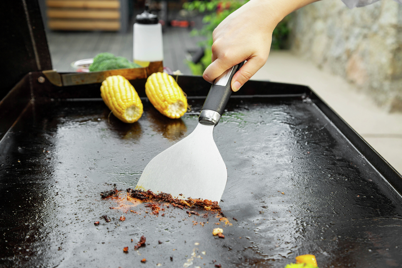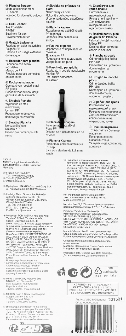 Скребок из нержавеющей стали. Скребок для гриля с пластиковой ручкой для чистки гриля и сковороды-гриль. Предназначен для использования как в домашних условиях, так и на открытом воздухе.