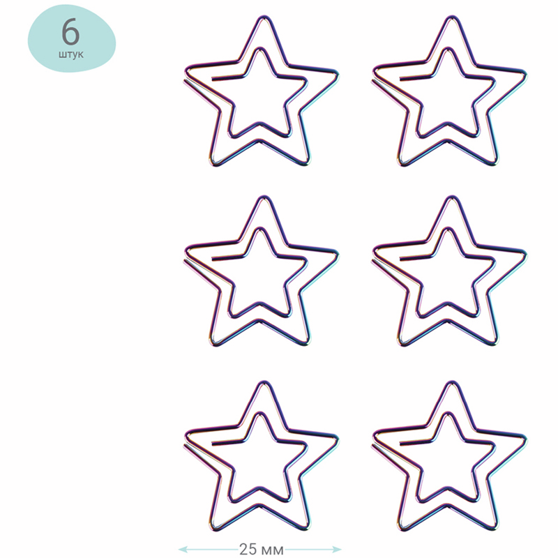 Скрепки фигурные Meshu Stars 6шт, 25мм