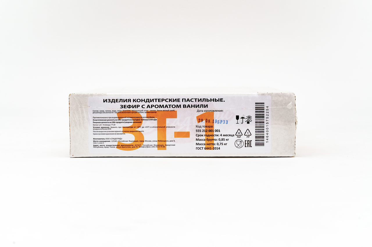 Сахар, патока, яблочное пюре (яблоки протертые, консервант - сернистый ангидрид), белок яичный, агент желирующий - пектин, регуляторы кислотности - молочная кислота, цитрат натрия, ароматизатор пищевой - ванильный, консервант - сорбиновая кислота