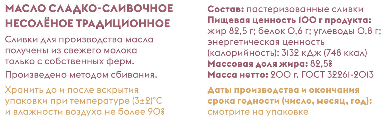 Масло сладко-сливочное Братья Чебурашкины 82,5%, 200 г БЗМЖ (без заменителя молочных жиров) – это продукт, который получают путем взбивания молока. Он обладает насыщенным, приятным ароматом и ярко-выраженным сливочным вкусом. Продукт является натуральным и экологически чистым. Он включает в себя большое количество витаминов, макроэлементов, незаменимых жирных кислот, что положительно влияет на жизнедеятельность человеческого организма. Все, входящие в сливочное масло, витамины – жирорастворимые. Они отлично усваиваются организмом. Регулярное употребление помогает укреплять иммунитет, улучшать самочувствие и работоспособность. Кроме того, продукт полезен для глаз, костей. Он снижает возникновение сердечно-сосудистых заболеваний и помогает поддерживать здоровье ЖКТ. Сливочное масло рекомендуется употреблять с хлебом, булкой. На основе данного продукта готовят различные соусы, горячие вторые блюда и выпечку.