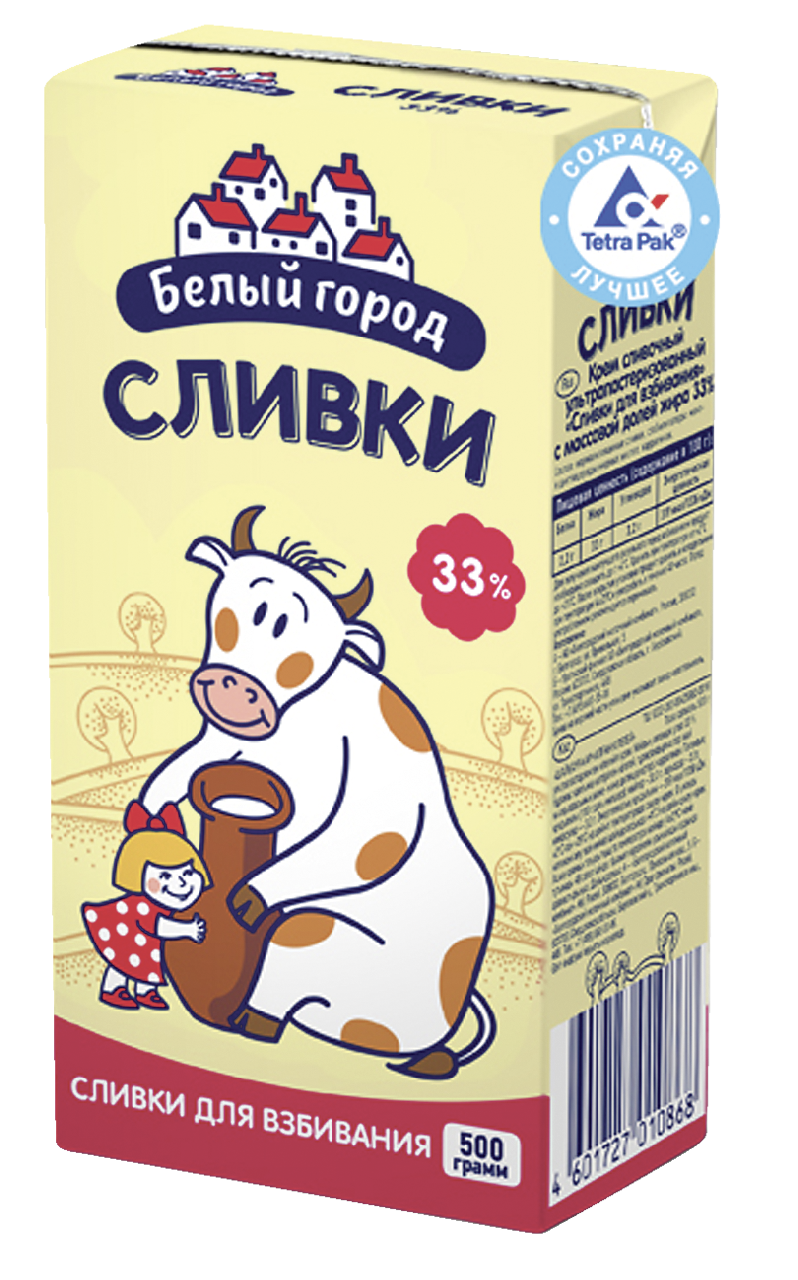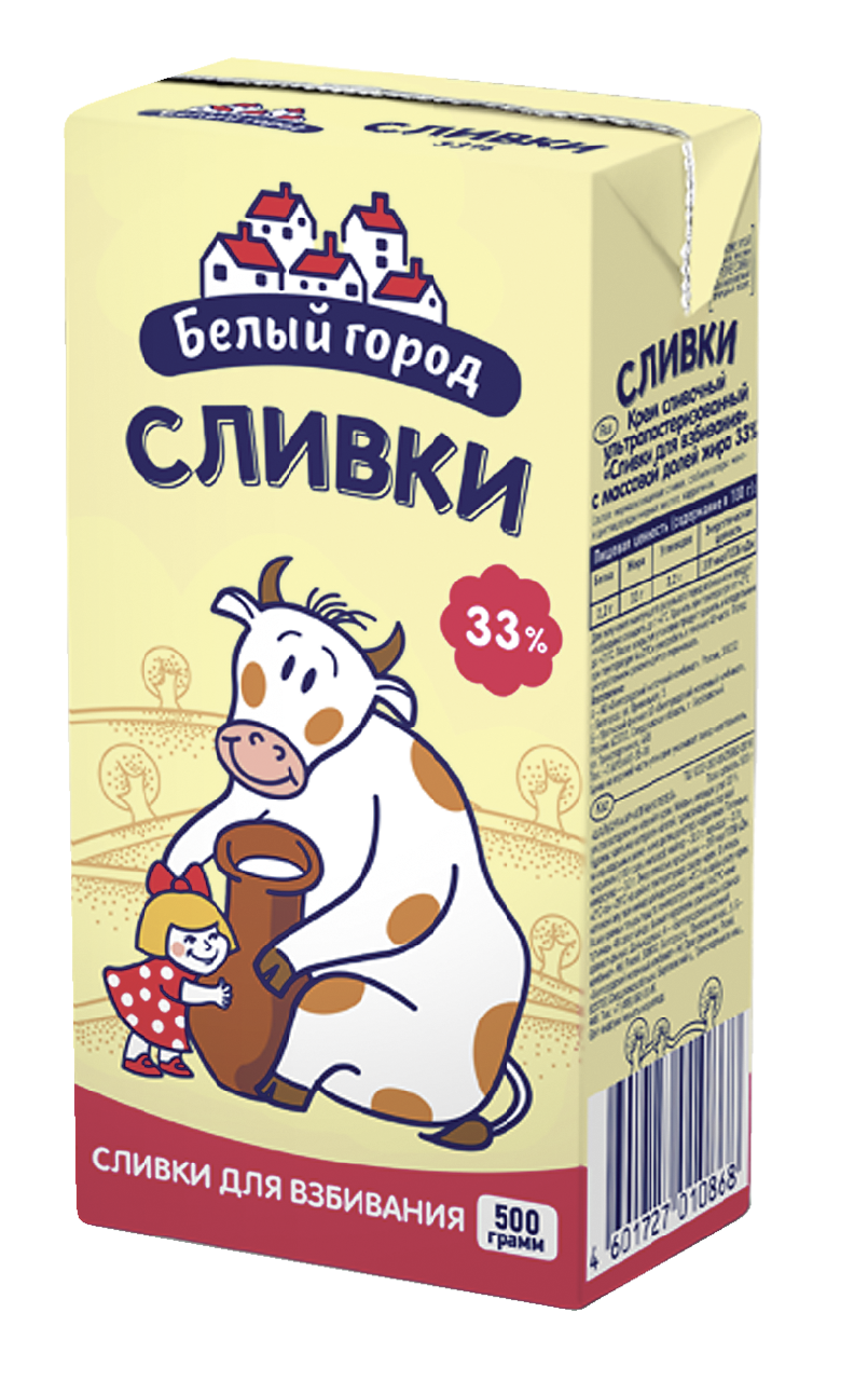 Сливки Белый город стерилизованные 33%, 500г x 24 шт