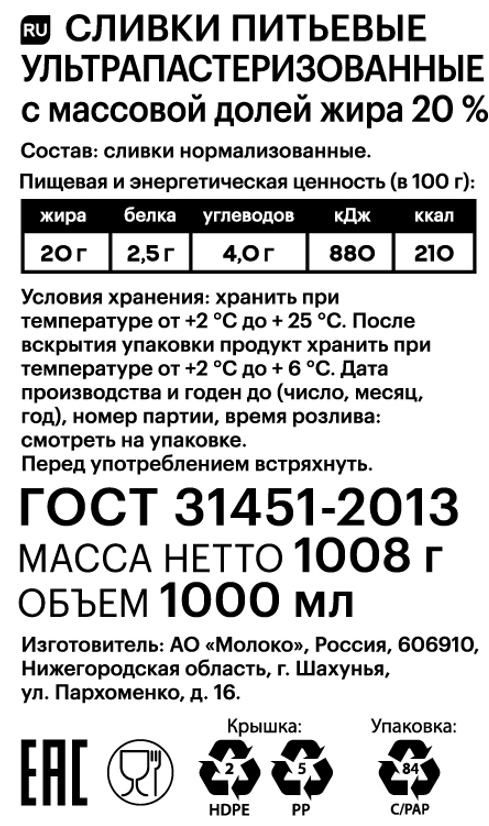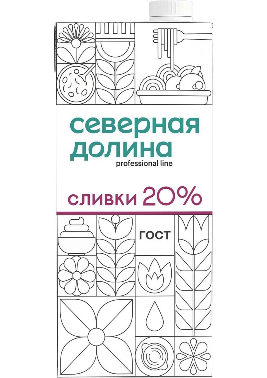 Сливки Северная долина Professional Line ультрапастеризованные 20%, 1л