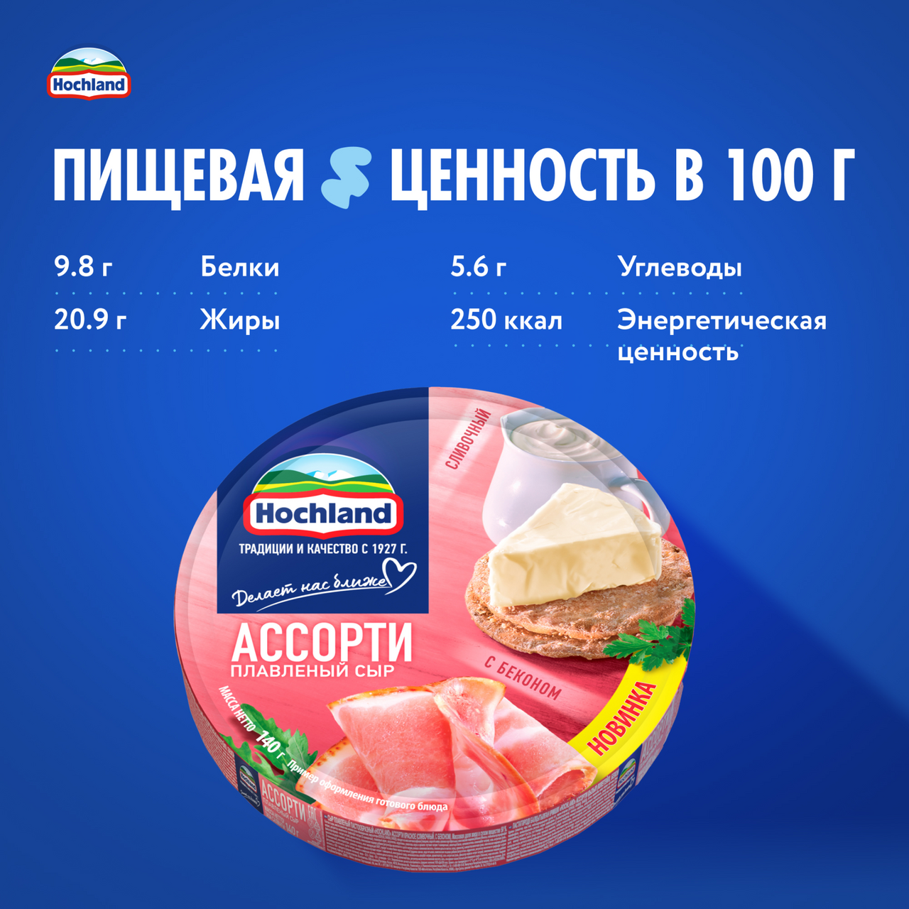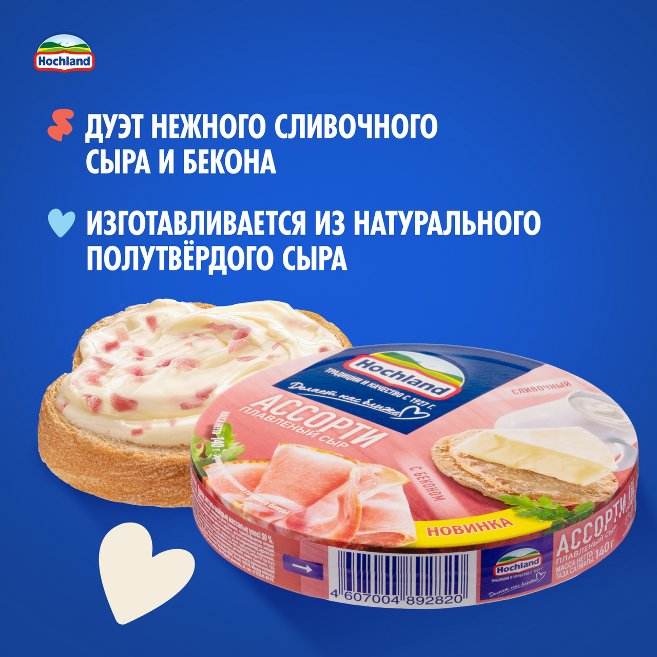 Сыр плавленый Hochland Ассорти сливочный с беконом треугольники, 140г
