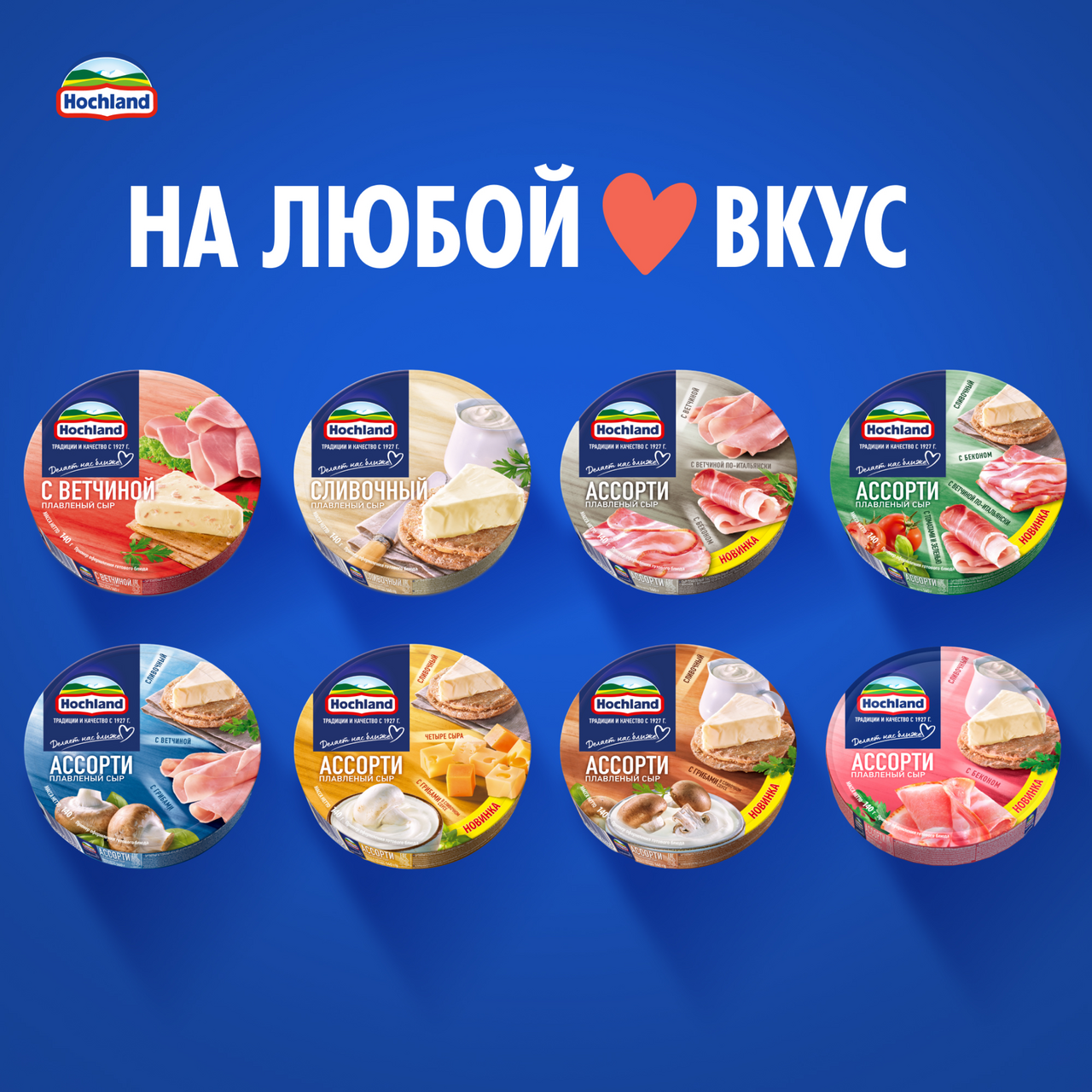 В одной упаковке плавленого сыра Hochland Ассорти Красное — два самых популярных вкуса. Дуэт нежного сливочного сыра и плавленого сыра с беконом не оставит никого равнодушным. Ведь теперь можно получить сразу двойное удовольствие, которое легко взять с собой!