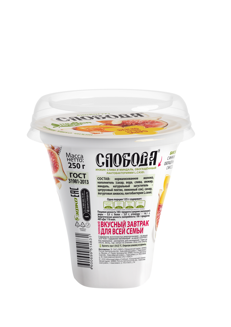 Йогурт СЛОБОДА инжир-слива-миндаль 5%, 250г