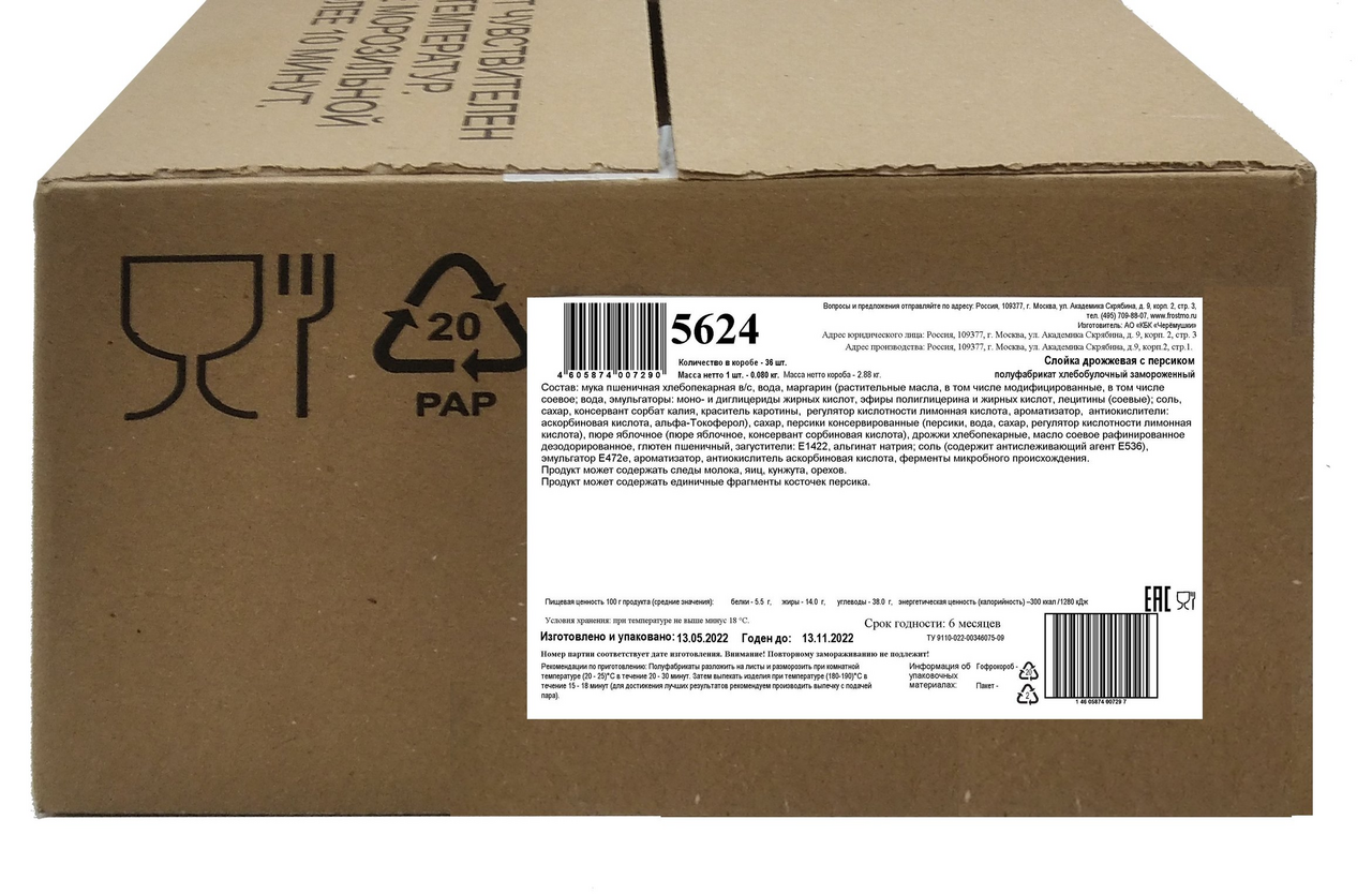 Слойка Фростмо персик дрожжевая, 80г x 36шт