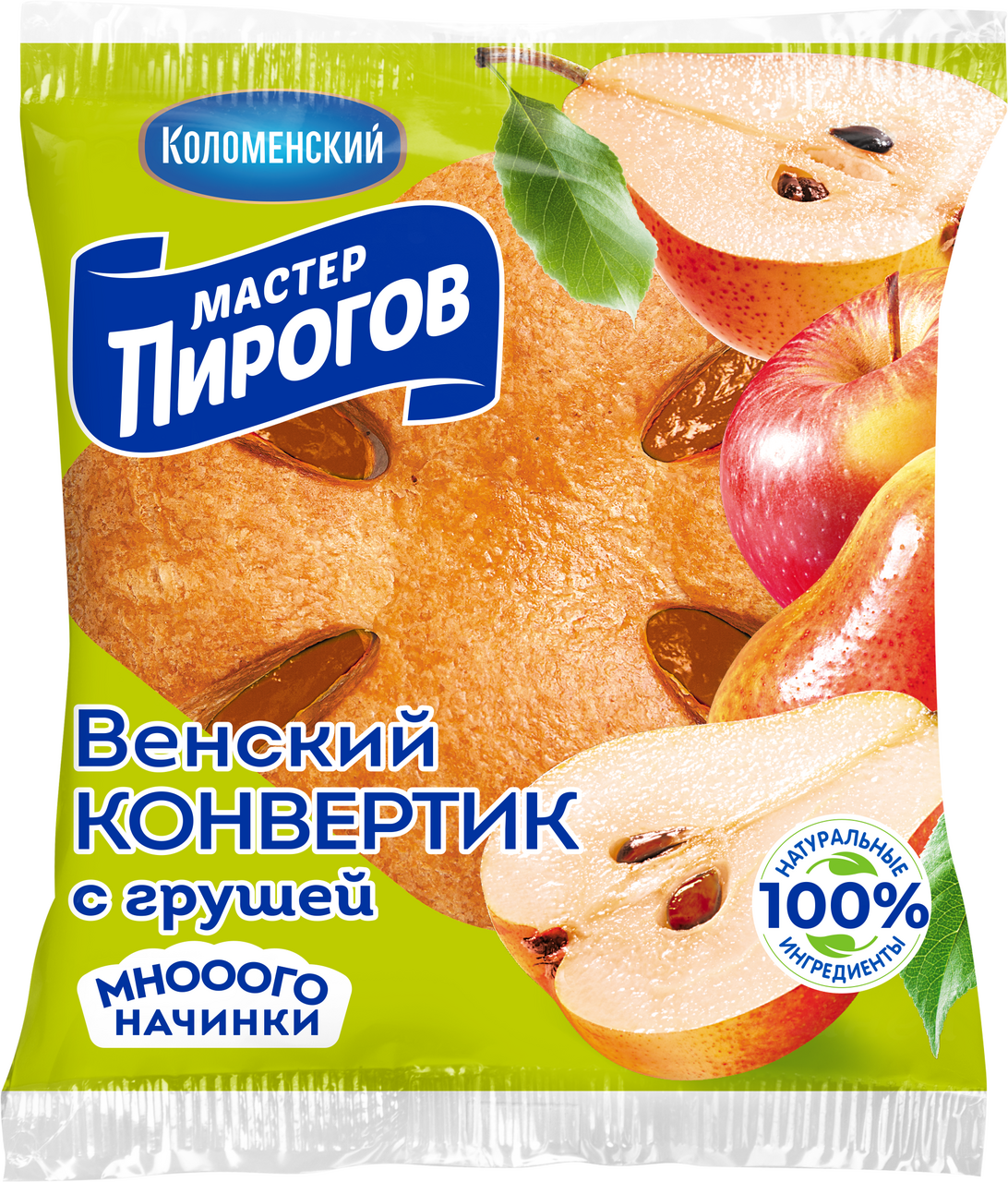 Слойка Мастер Пирогов Венский конвертик с грушей, 70г нежное, ароматное лакомство для завтраков, перекусов во время полдника. Воздушное слоеное тесто свернуто небольшим конвертиком, в котором находится нежнейшая начинка, приготовленная из перетертой с сахаром грушевой мякоти. Слойка прекрасно сочетается с кофе, чаем, молоком, кефиром, питьевым йогуртом или какао.