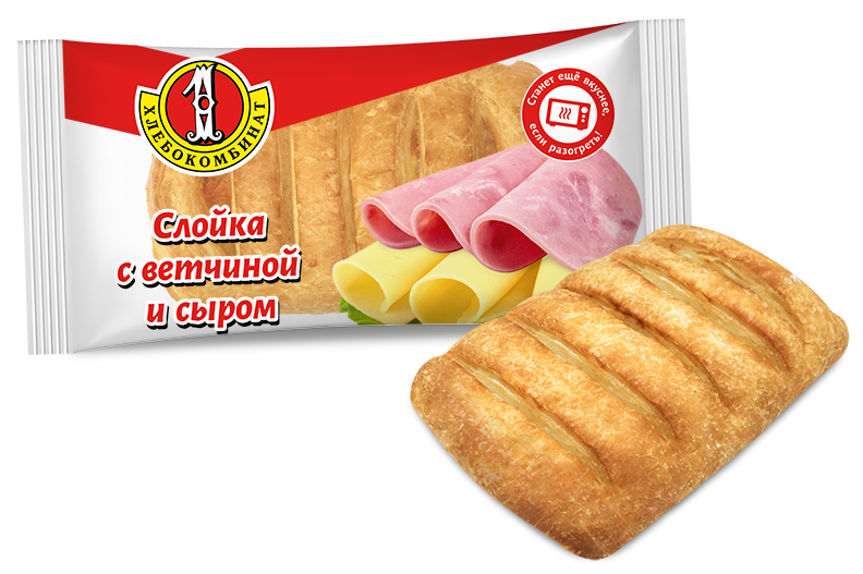 Слойка Первый хлебокомбинат с ветчиной и сыром, 90г