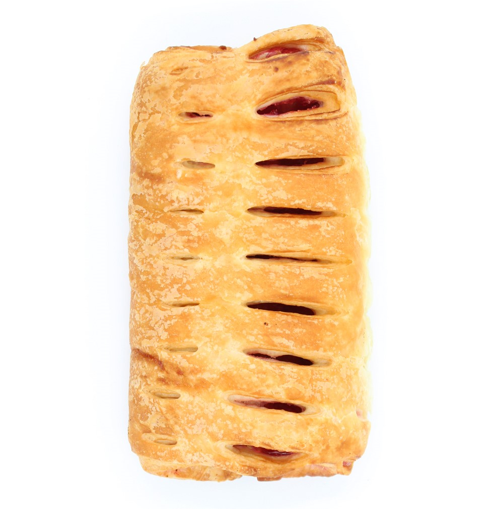 Слоеная булочка с натуральной вишневой начинкой с добавлением ягод вишни. Выпечена из невесомого слоеного теста, которое отличается воздушным, рыхлым мякишем и румяной корочкой. Начинена ароматным вишневым конфитюром. Подходит для перекуса. Подается к чаю или кофе.