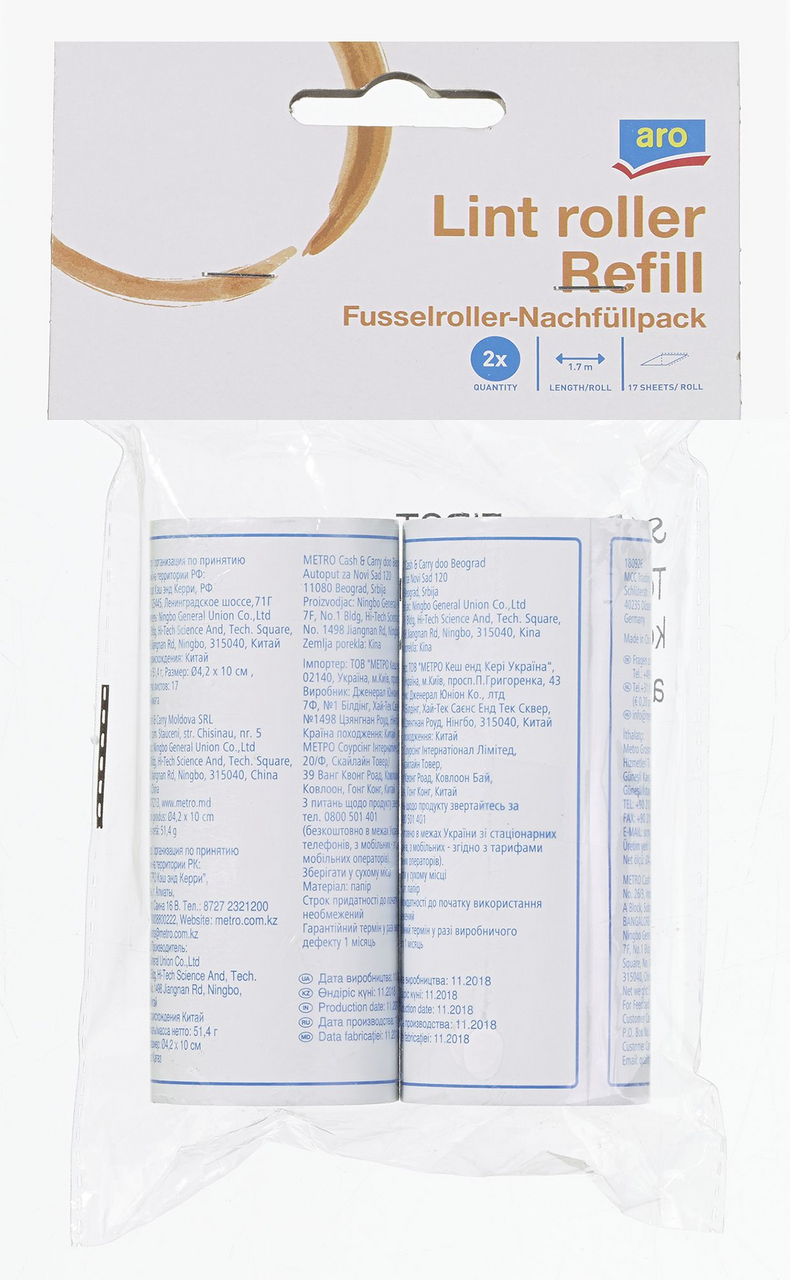 aro Сменный блок для ролика, 17 листов, 2 шт. легко устанавливается на ролик и обеспечивает быстрый и удобный сбор мусора (ворсинки, пыль и волосы) с одежды и других поверхностей их текстиля. Благодаря своей прочной конструкции, блок не прогибается и не деформируется. Он обеспечивает чистоту и гигиеничность тканям. Изделие может использоваться с различными моделями роликов. Он имеет универсальные размеры и крепления, что позволяет легко установить его на большинстве роликов разных производителей. В каждом блоке – 17 отрывов.