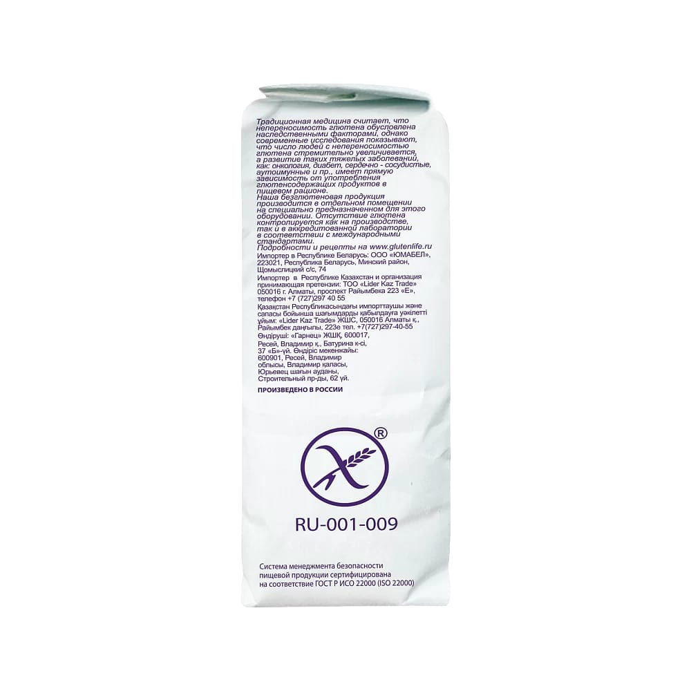 Мука рисовая, крахмал тапиоковый, кукурузный крахмал, кукурузная мука, льняная мука белая, амарантовая мука, соль, сахар, молоко сухое, яичный меланж, разрыхлитель - гидрокарбонат натрия (сода пищевая), регулятор кислотности - лимонная кислота загуститель - ксантановая камедь.