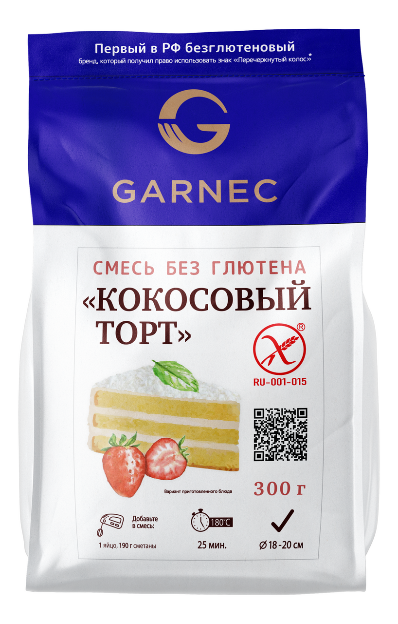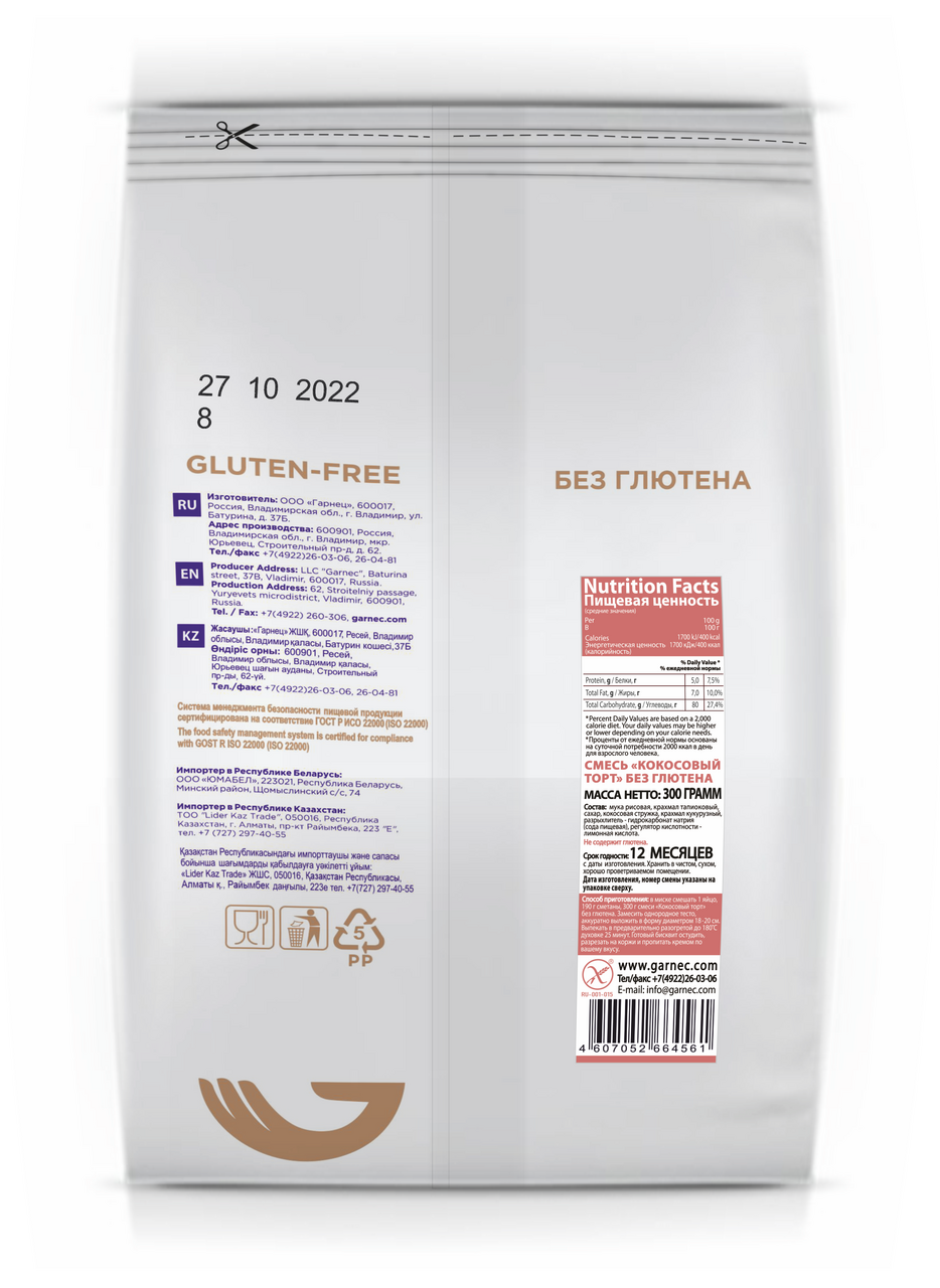 Смесь для выпечки Garnec Кокосовый торт без глютена, 300г