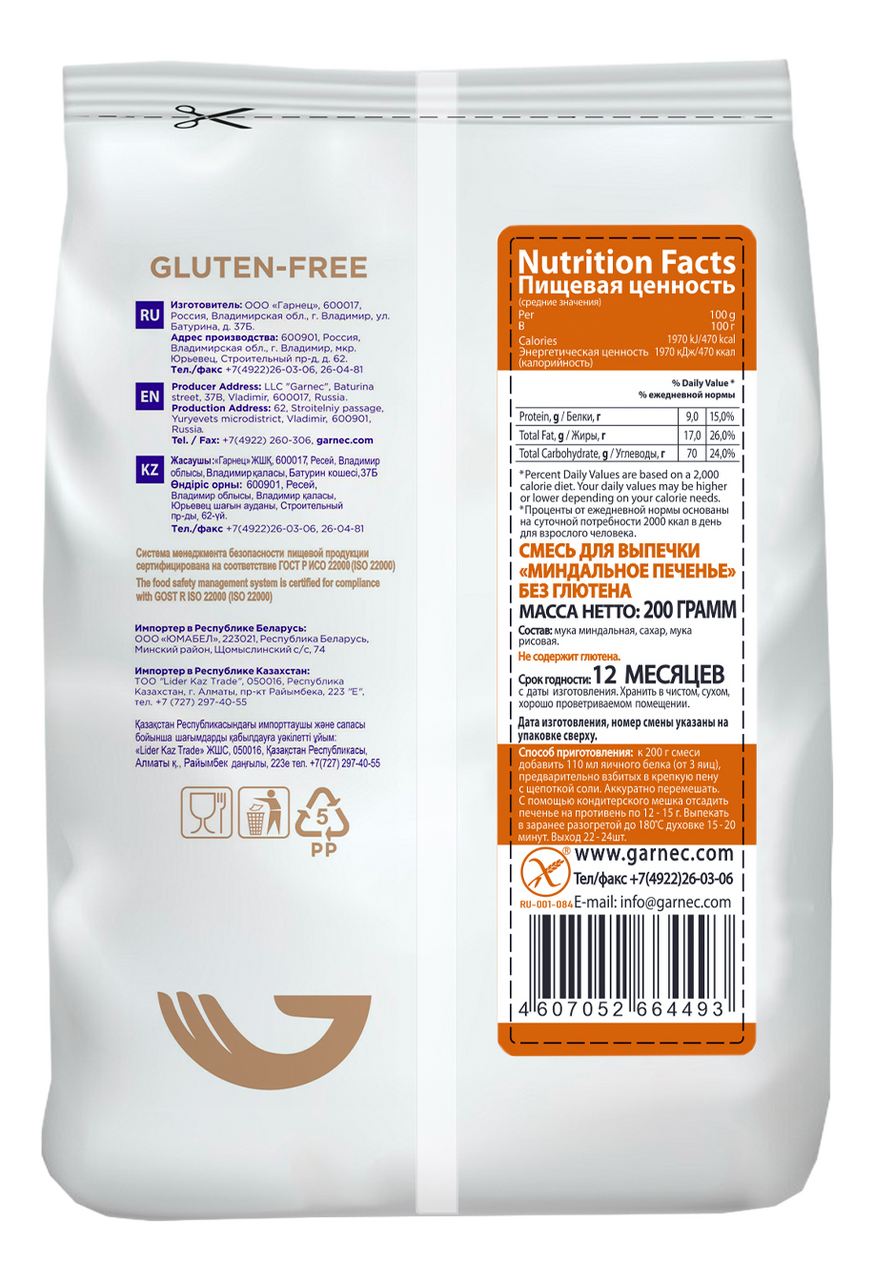 Смесь для выпечки Garnec Миндальное печенье без глютена, 200г