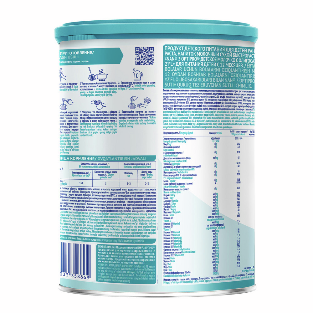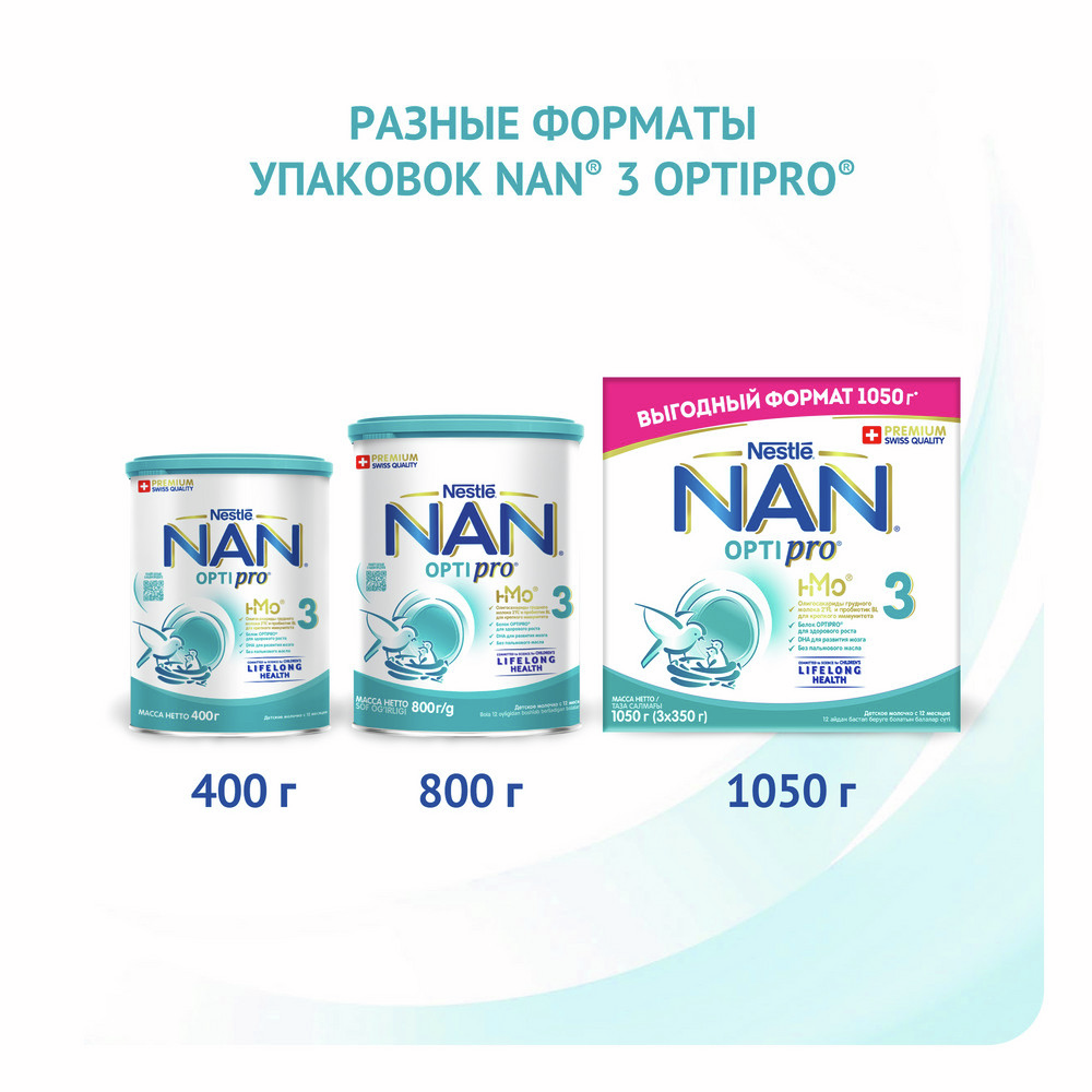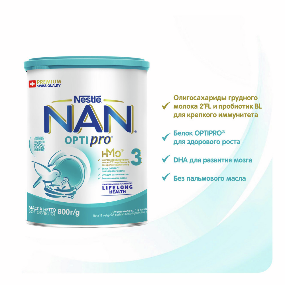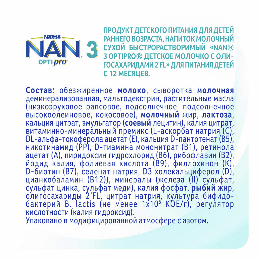 Смесь молочная детская NAN 3 Optipro с 12 месяцев, 800г