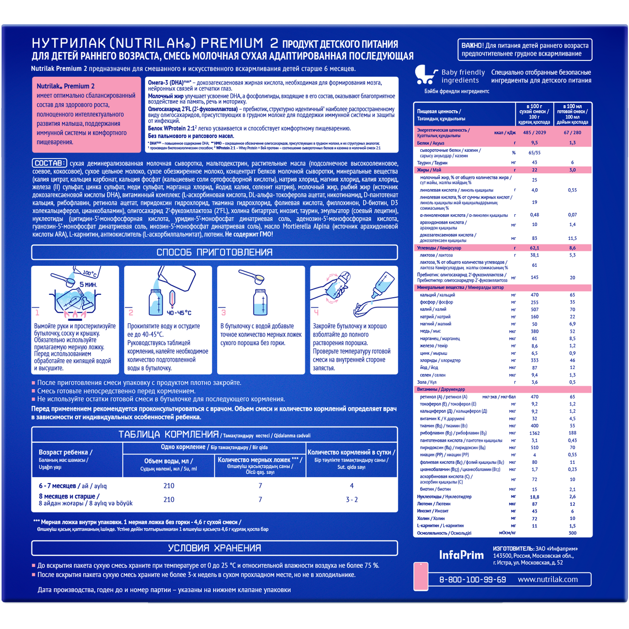 Смесь молочная сухая адаптированная последующая Nutrilak Premium 2 предназначена для смешанного и искусственного вскармливания детей 6 месяцев. Имеет оптимально сбалансированный состав для здорового роста, полноценного интеллектуального развития малыша, поддержания иммунной системы и комфортного пищеварения.