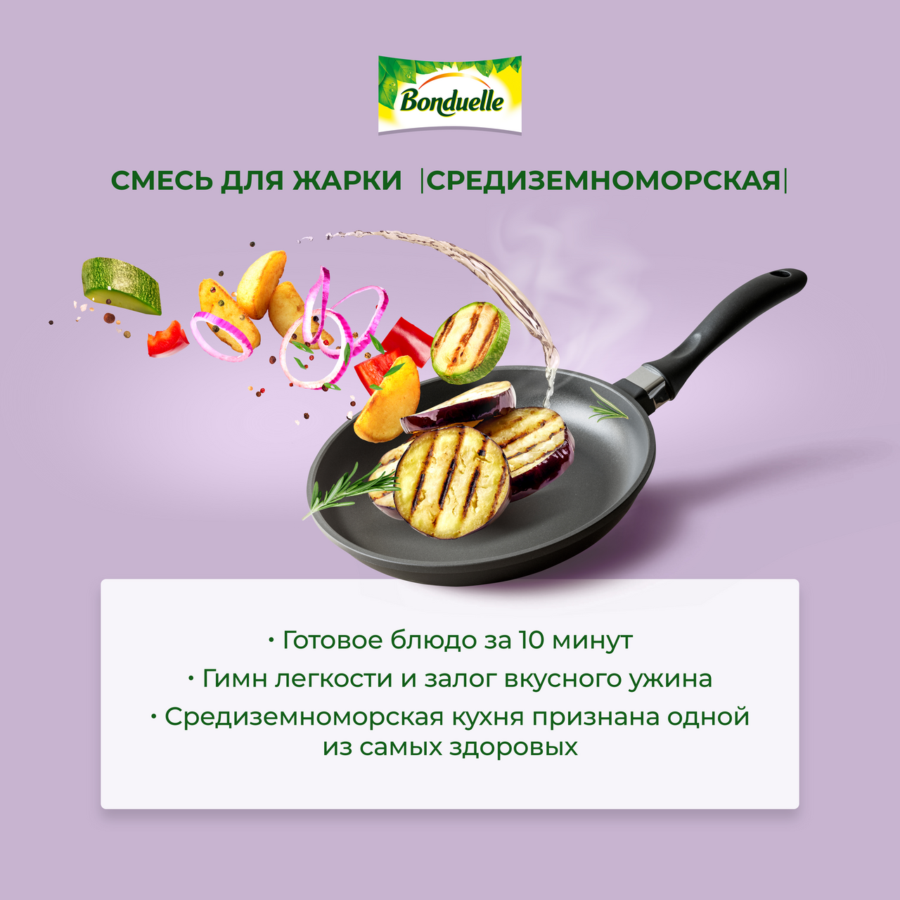 Средиземноморская смесь для жарки от Бондюэль — это полезный ужин за 7 минут. Блюдо итальянской кухни приготовлено по традиционному рецепту. Замороженная овощная смесь включает баклажаны и кабачки гриль, обжаренный картофель, кабачки резаные, обжаренный сладкий перец. Овощи выращены в экологически чистых регионах, собраны вручную на пике зрелости. Продукт служит источником витаминов A, C, B, калия, магния, кремния и клетчатки. Овощи не нужно предварительно размораживать, разогрейте их на сковороде без масла или в микроволновой печи. Смесь с кабачками гриль гармонично дополнит мясо или рыбу.