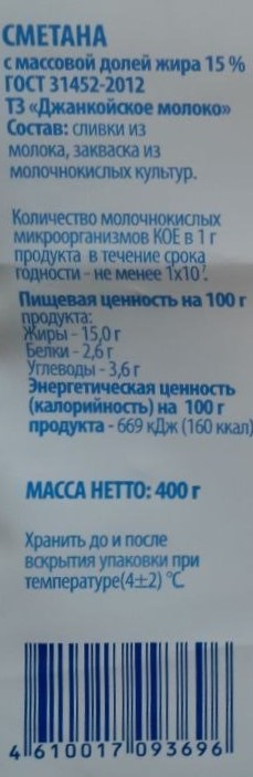 Сметана "Джанкойское молоко" 15% - это классический молочный продукт, изготовленный из отборного коровьего молока. Ее густая, кремовая консистенция и приятный, слегка кисловатый вкус идеально дополнят ваши любимые блюда.