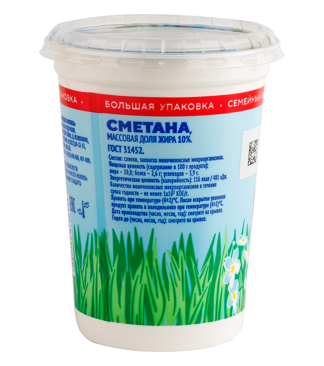 Сметана Томское молоко 10%, 500г производится из натурального молока с ферм в экологически чистом районе Томской области. Для ее изготовления используется только настоящее коровье молоко без добавок и консервантов.