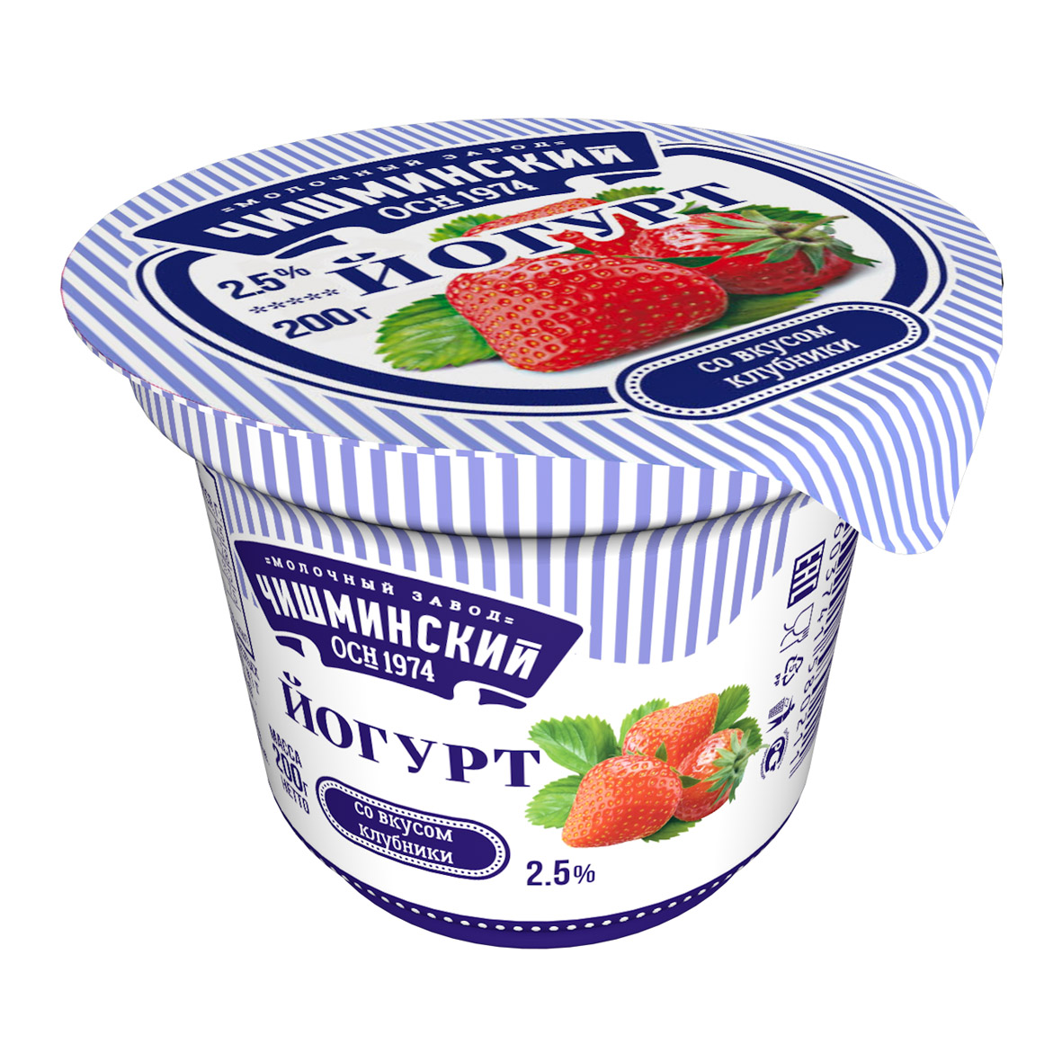 Йогурт Молочный завод Чишминский со вкусом клубники 2.5%, 200г