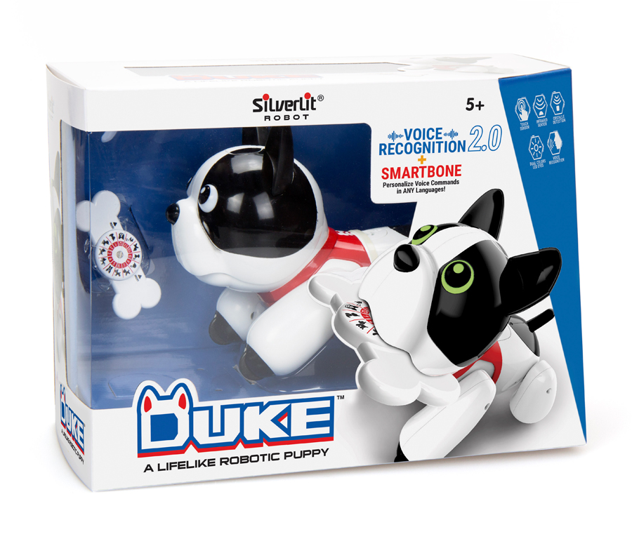 Уникальный робот щенок. Ему можно присвоить свое имя, обучить более 12 голосовым командам на любом языке, а также наблюдать за его взрослением. С помощью бесплатного прилоения для телефона вы можете видеть стадию взросления, насколько щенок счастлив и насколько он сыт. Воспитай своего щенка. Сенсоры препятствий, обучающая косточка. Возрастное ограничение от 5 - 7 лет