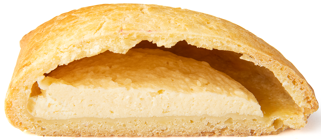 Мука пшеничная высшего сорта, маргарин (масла растительные рафинированные и дезодорированные: пальмовое и его фракции, подсолнечное, кокосовое, вода, эмульгаторы (Е471, Е475), соль, антиокислители (Е304i, Е306), консервант Е202, регулятор кислотности лимонная кислота, ароматизатор, красители Е100, Е160b), продукт жировой творожный (молоко сухое обезжиренное, заменитель молочного жира (рафинированные и дезодорированные растительные масла (в том числе соевое), эмульгатор Е471, антиокислители Е306), стабилизатор Е1414, пищевые растительные волокна, регулятор кислотности Е331, уплотнитель Е509, консервант Е202, закваска, молокосвертывающий фермент животного происхождения), начинка кондитерская термостабильная (вода, сахар, жир специального назначения, патока, сыворотка молочная сухая, крахмал кукурузный, соль, эмульгатор Е460, стабилизатор Е415, регулятор кислотности лимонная кислота, консервант Е202, ароматизатор, краситель Е171), сахар, вода питьевая, продукт яичный, разрыхлители сода пищевая, карбонат аммония, ароматизатор ванилин, соль.