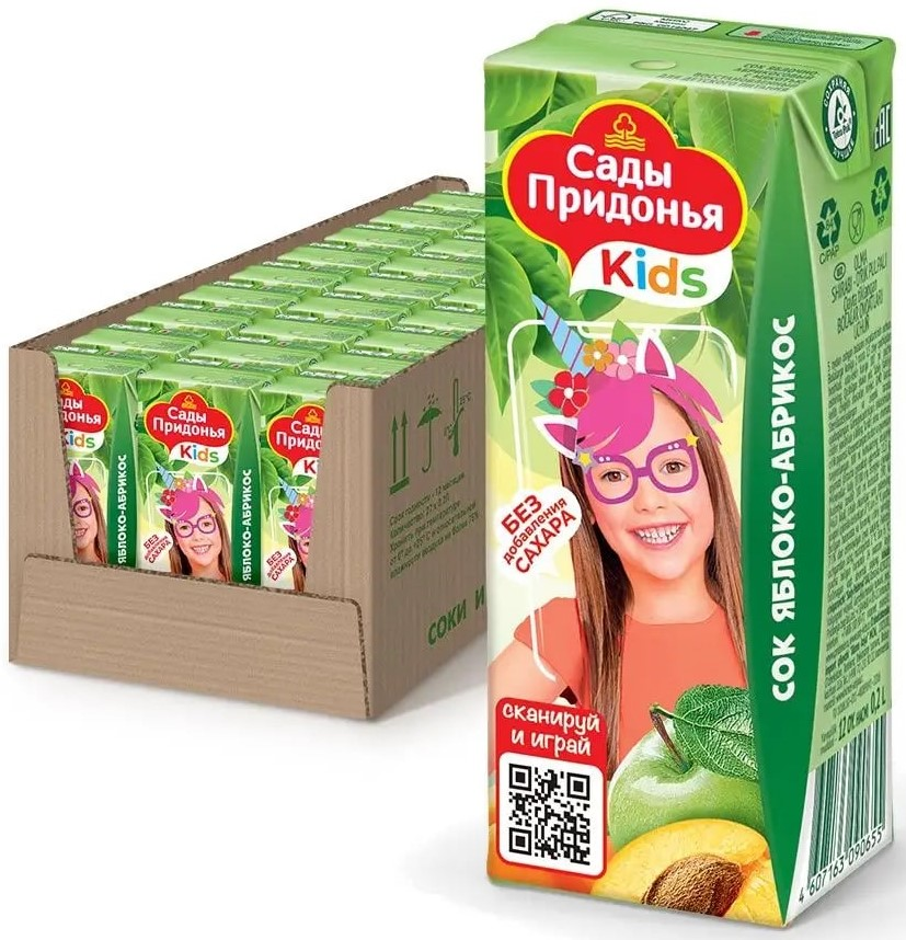 Сок детский Сады Придонья Яблоко и абрикос с 5 месяцев, 200мл х 27 шт