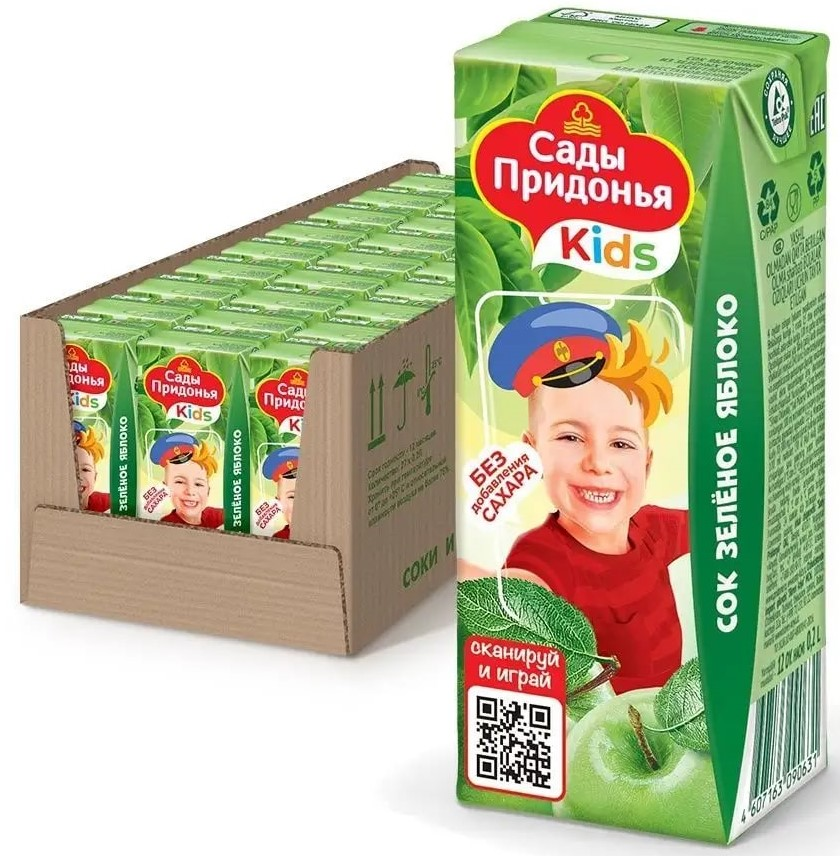 Сок детский Сады Придонья Зеленое яблоко с 4 месяцев, 200мл х 27 шт