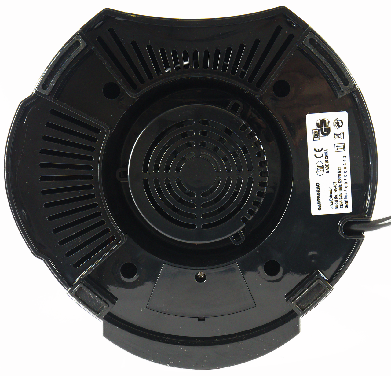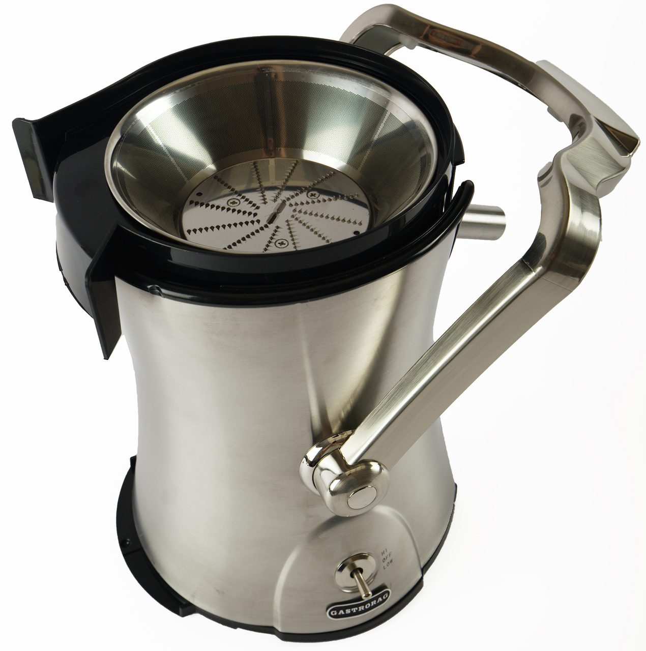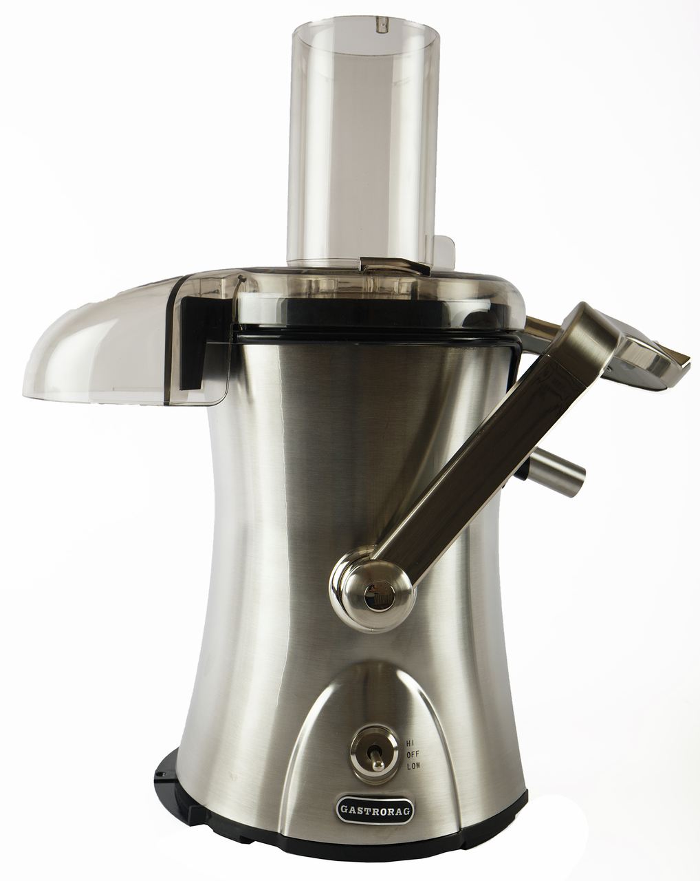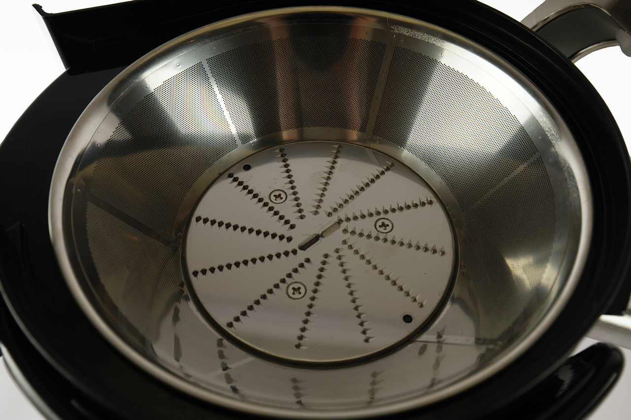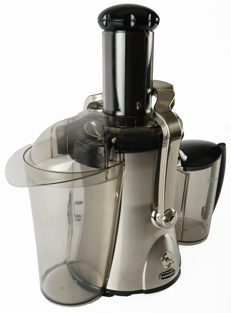 Соковыжималка для овощей и фруктов Gastrorag HA-007 – это техника для приготовления напитков на профессиональной и домашней кухне. Электрическая соковыжималка относится к центробежному типу и отличается высокой скоростью отжима, а мощный двигатель с защитой от перегрева гарантирует высокую производительность девайса для кухни. Большая соковыжималка имеет широкую загрузочную горловину диаметром 75 мм, терку-фильтр из нержавеющей стали и 2 скорости отжима. Первая скорость (7500 об/мин) предназначена для переработки мягких овощей и фруктов, таких как цитрусовые, виноград, огурцы и помидоры. Вторая скорость (11000 об/мин) предназначена для отжима сока из твердых овощей и фруктов, таких как яблоки, ананасы, морковь и капуста. Возможность регулировки скорости в зависимости от типа сырья позволяет получить высокий выход сока – до 65%. Благодаря сепаратору конической формы электросоковыжималка имеет функцию автоматического отделения отходов. В комплекте центрифуги для отжима овощей и фруктов поставляется контейнер для жмыха емкостью 2,2 л, контейнер для сока емкостью 1,5 л с крышкой и пеноотделителем и нейлоновая щетка для очистки.
